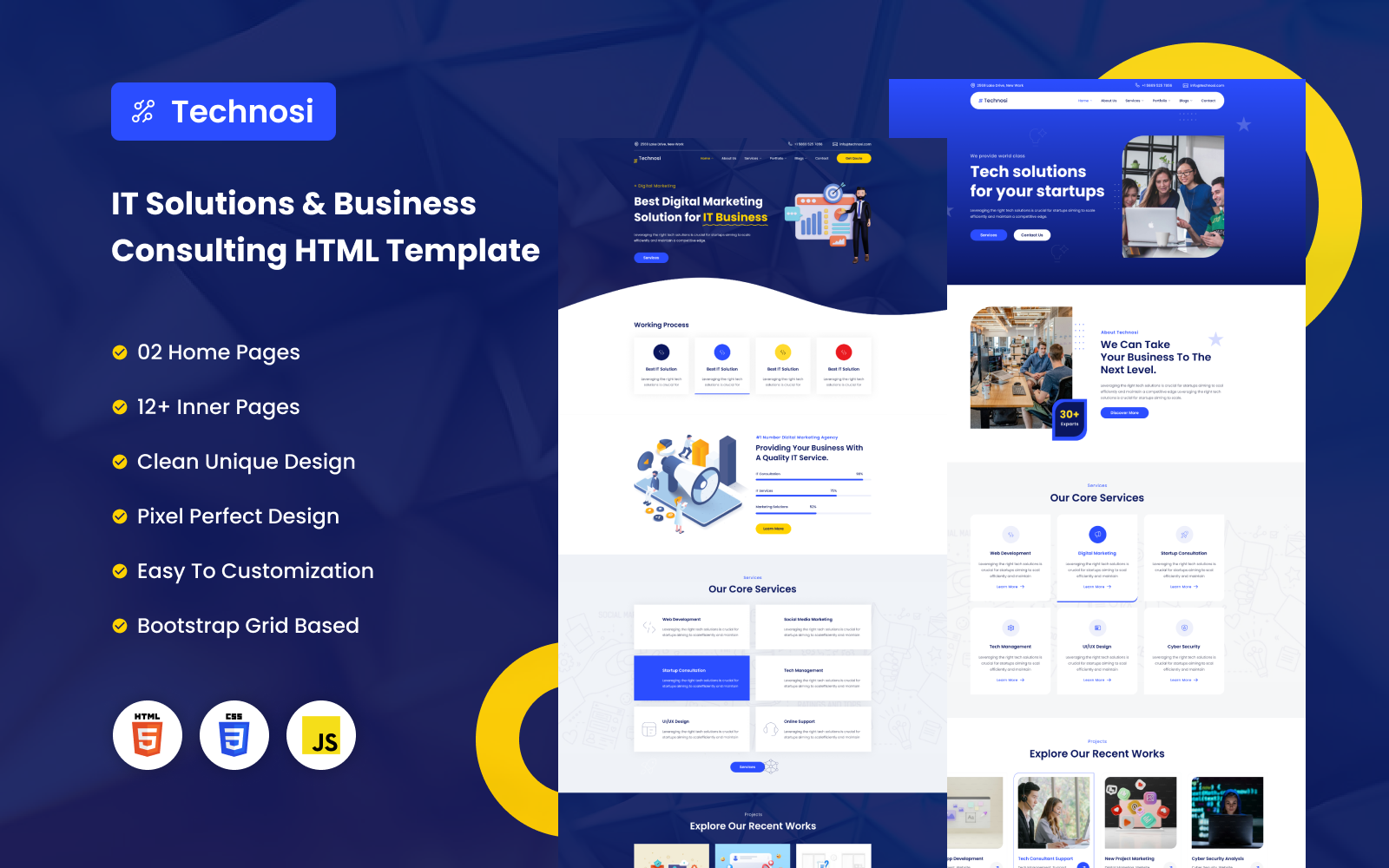 Technosi - IT Solutions & Business Consulting HTML Template is a modern and responsive web template designed for IT companies, technology firms, business consulting agencies, and service providers. It provides a professional layout that caters to various tech-related industries, ensuring easy navigation, intuitive user experience, and seamless functionality. Below is a typical description of its features: