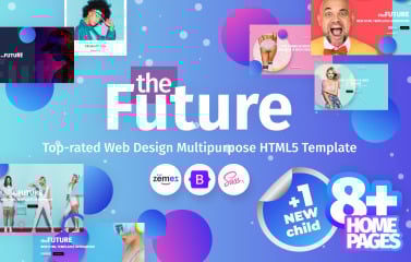 Our template is provided with a wide range of pre-designed pages. theFuture web design agency multipurpose website template includes various layouts for such pages as portfolio and blog. Besides, it has 8 different home pages. The template also has the Services and Contacts pages. You can showcase your solutions & connect with your clients via these pages. Moreover, with the Our Team page, it is easy to describe your employees' achievements and experience.