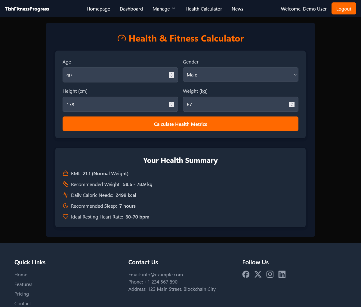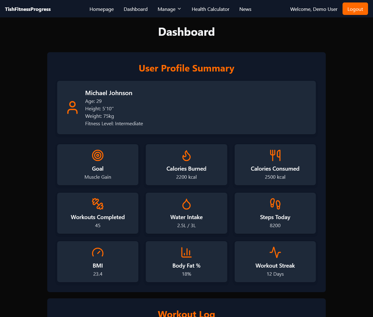 TishFitnessProgress - Next.js, TypeScript and Tailwind CSS Fitness Progress Template Website Template