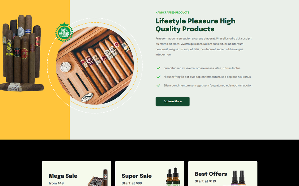 Our special HTML website template for tobacco products explores new possibilities to provide you with a new opportunity. Creating any type of website related to tobacco products is very easy with this website template. Along with this, a collection of elements necessary for a platform to create a marketplace for tobacco products has been collected in this website template.