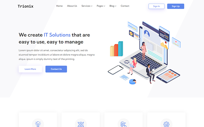 Trionix is a team of experienced IT professionals with a passion for technology. Our IT solutions and corporate website template are the perfect fit for any business that needs to stay ahead of the game in the digital age. We've got you covered, whether you're looking for an agency, creative template, or a multipurpose website to promote your company's products and services. We are an agency with a creative template and we offer digital services such as html5 templates, IT service, IT solutions, multipurpose, parallax, responsive and software. We also provide technical support for startups and businesses looking for eCommerce. This template includes many features such as parallax scrolling, creative headers, email templates and more!