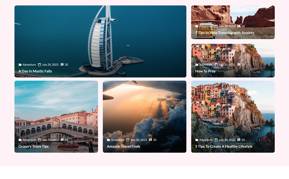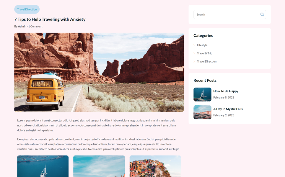 - Blog Layouts: Share travel tips, itineraries, and experiences with a modern blog design.