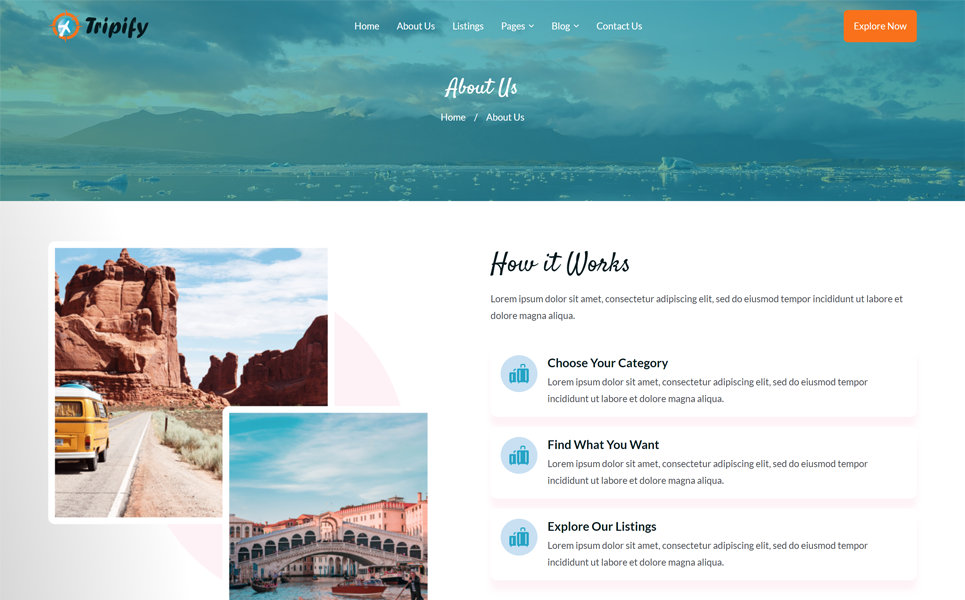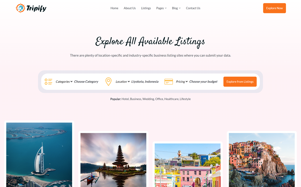 Featuring pre-designed pages, booking forms, and gallery layouts, this template offers everything you need to create an engaging online presence. Built with SEO-optimized and clean code, Tripify ensures excellent performance, quick loading speeds, and compatibility across all modern devices and browsers.