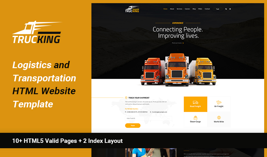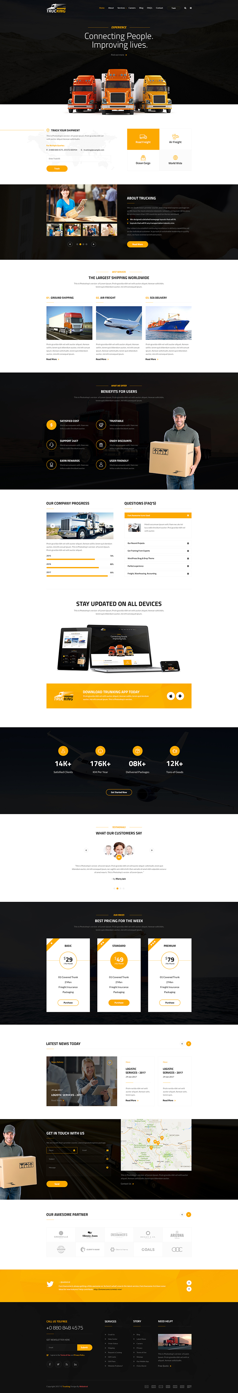Trucking is an HTML template created for logistics, trucking, transportation companies, and small freight businesses. Weather your company handles air freight, ocean freight, whole supply chain management, overland network or all of that together, you’ll certainly find a layout that will fit your needs. This is a powerful HTML template with tons of customization options and features. Trucking is based on the Bootstrap grid.