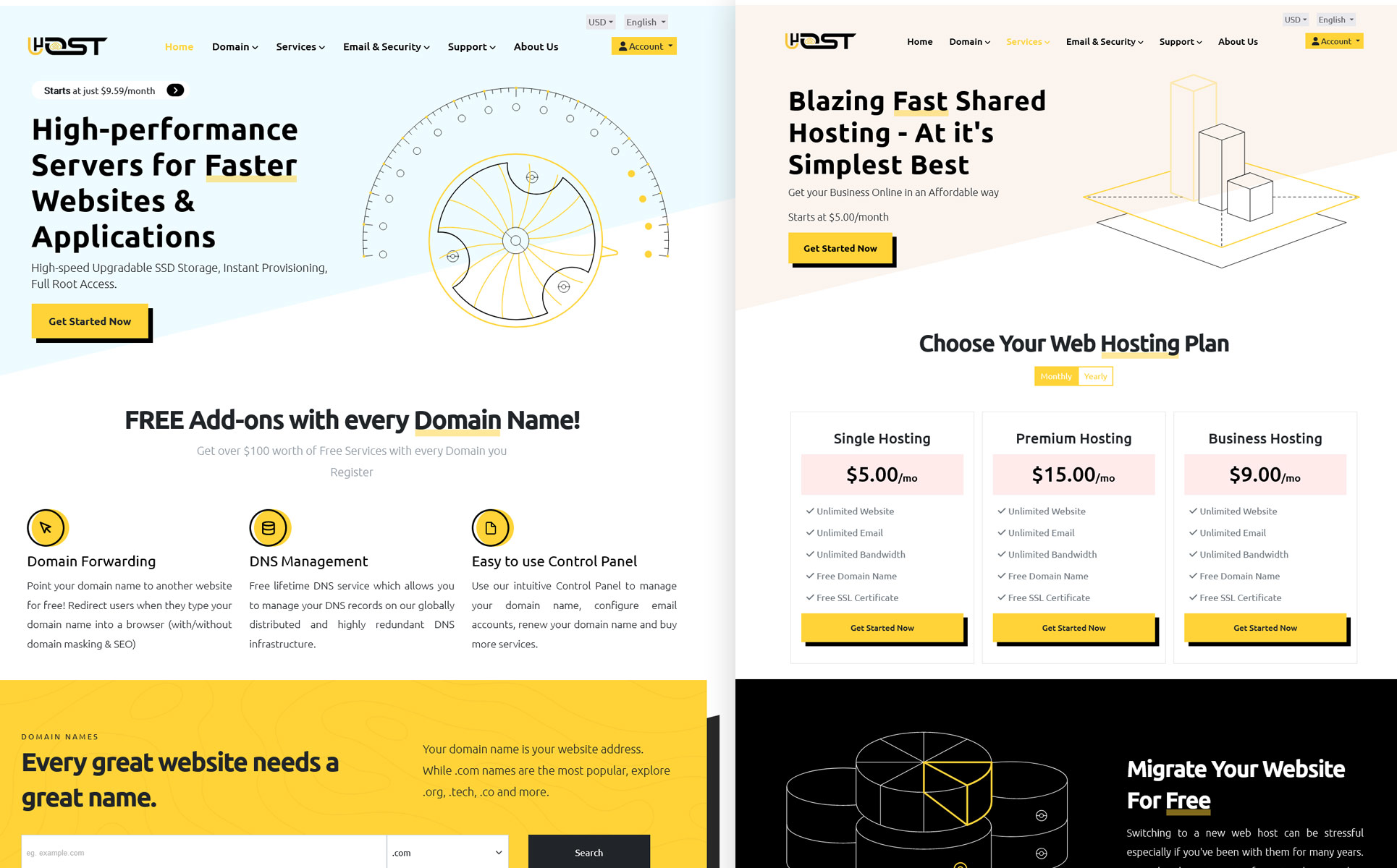 Uhost WHMCS Theme and HTML Template Website Template