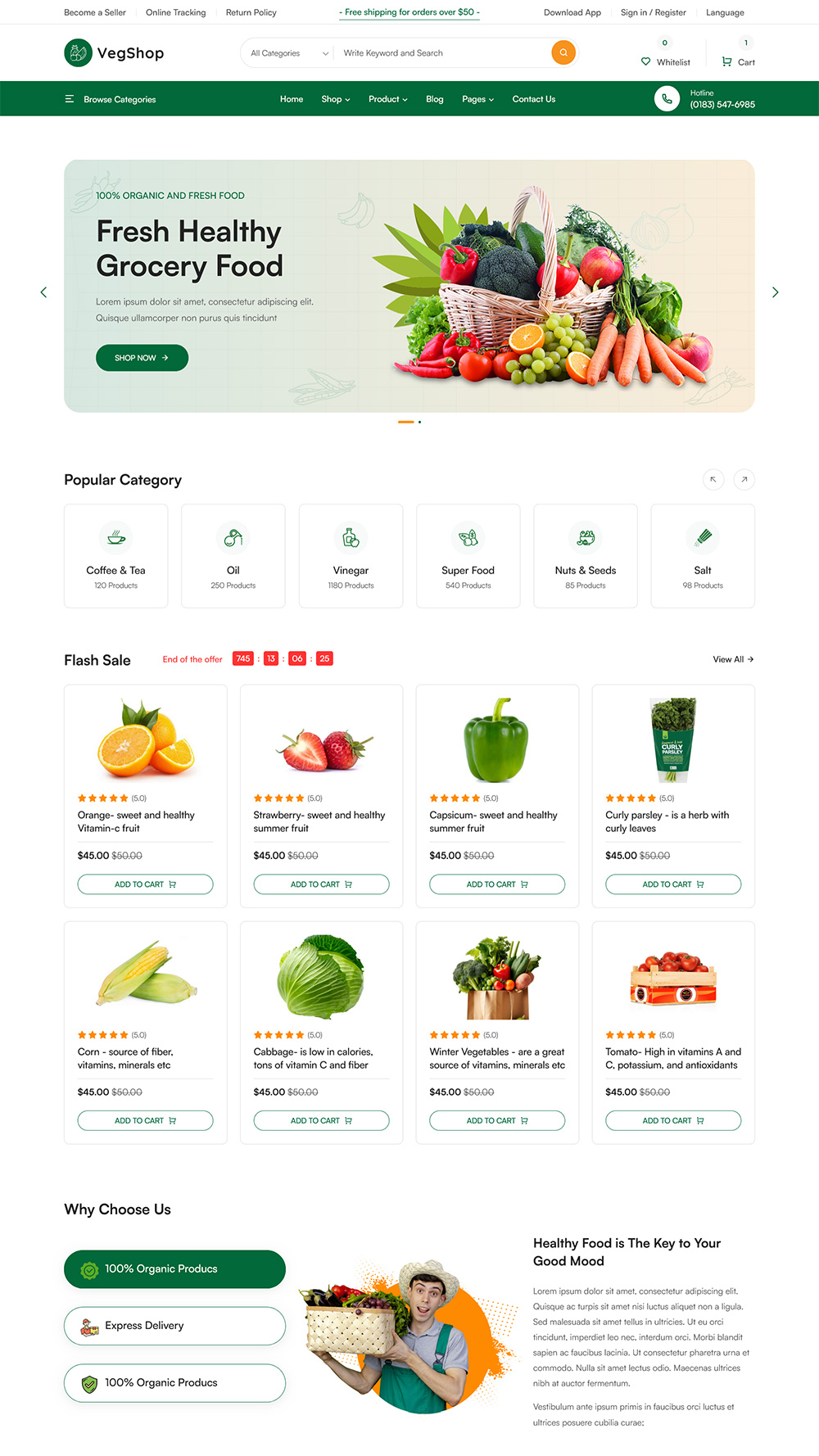 Vegshop is built with the latest Bootstrap framework, ensuring your site is not only visually stunning but also responsive across all devices. With its clean, fresh aesthetic, Vegshop perfectly showcases your organic products, making it easy for customers to browse and shop seamlessly.