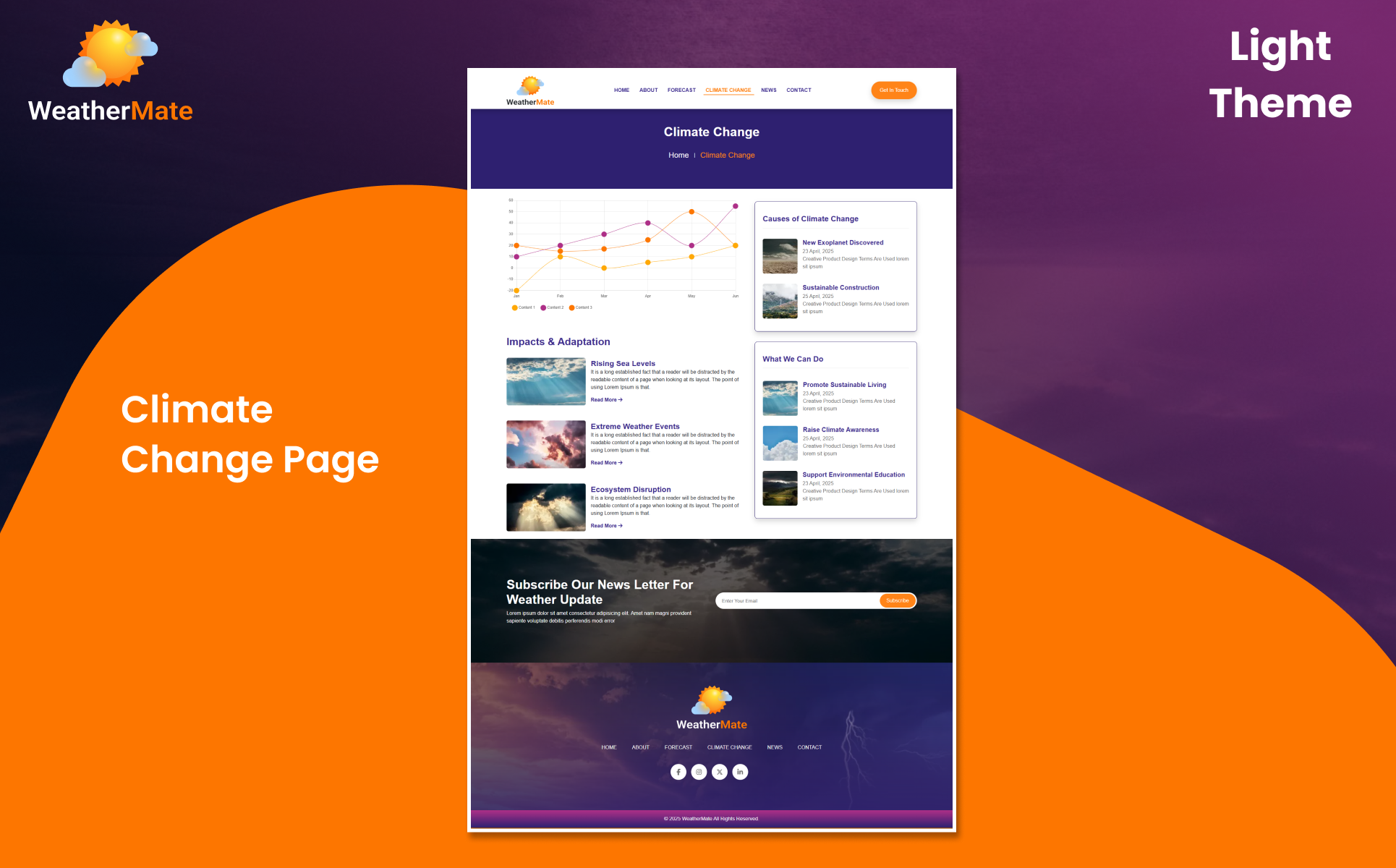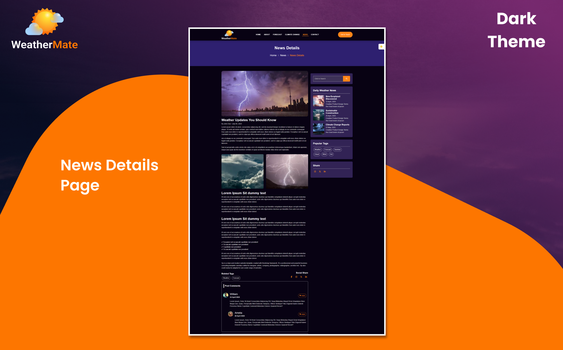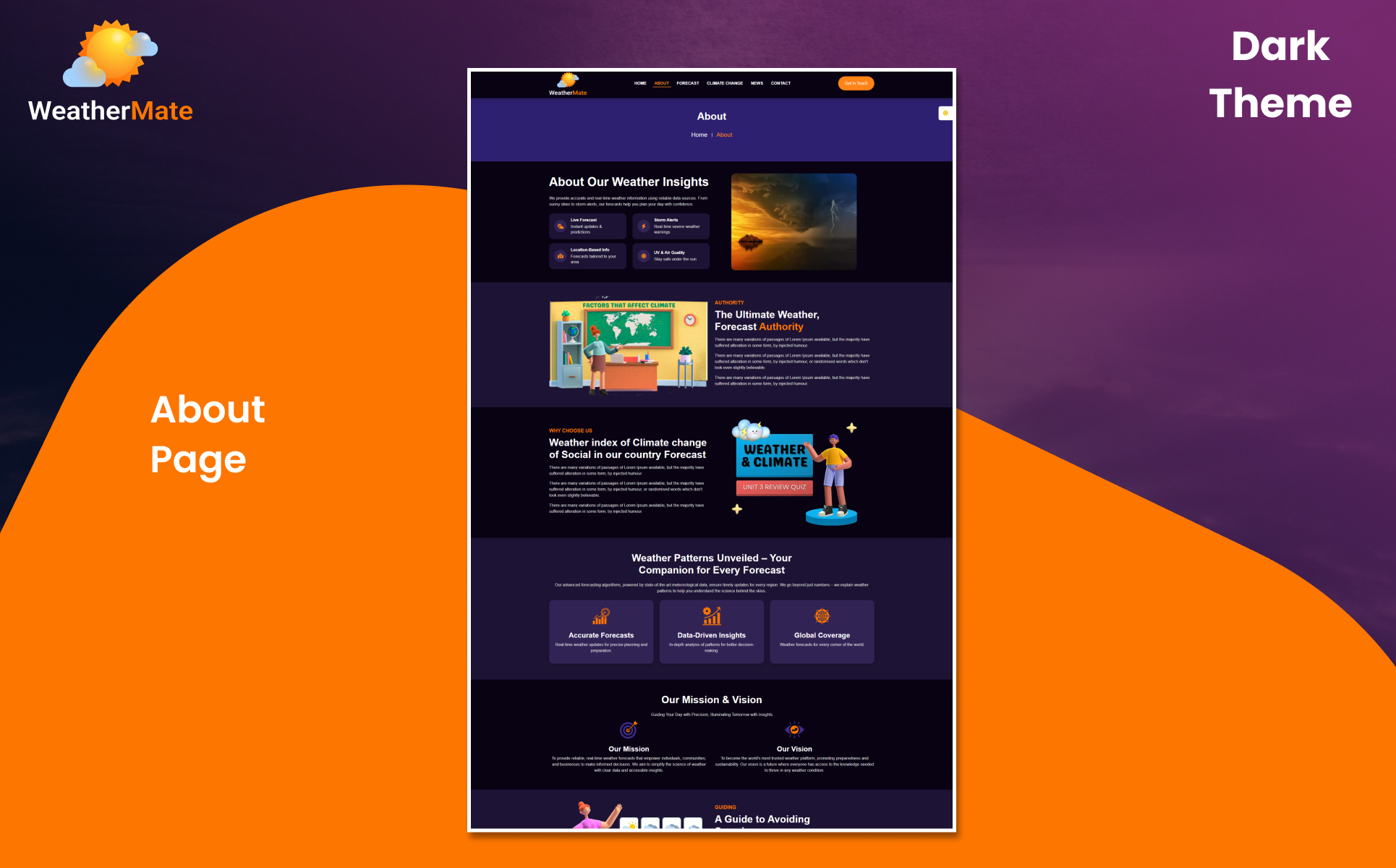 Tags: weather website, multipage weather forecast, climate info, meteorology template, Bootstrap weather site, environmental web design, responsive forecast layout, real-time weather data, UV index, air quality, weather blog, climate change awareness, weather news portal, clean weather UI, dark/light theme website