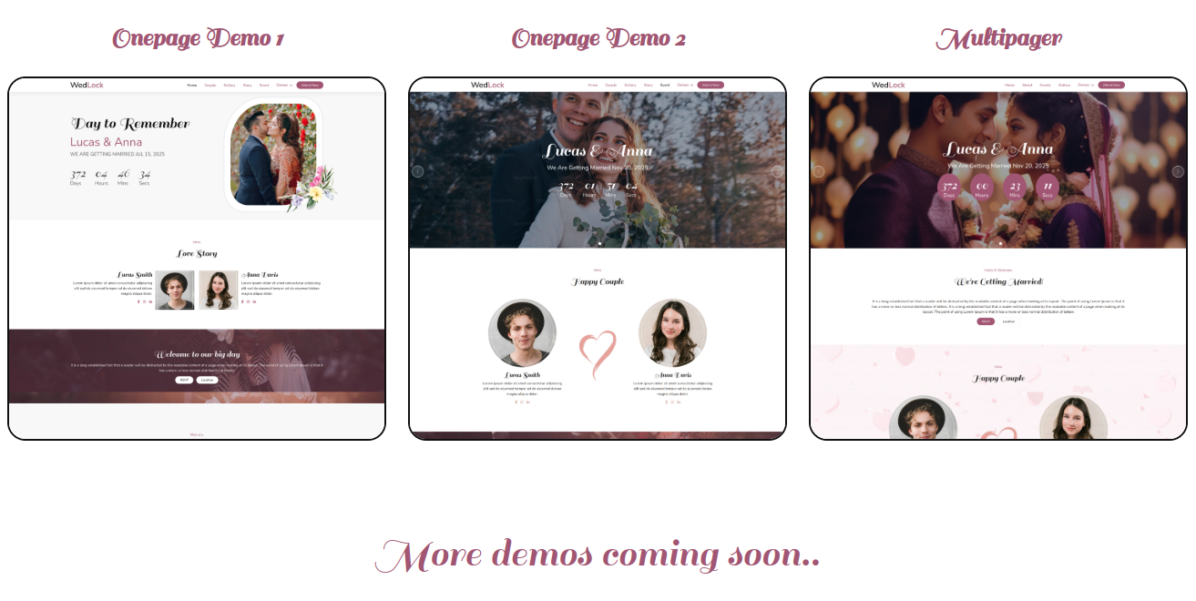 WedLock is a beautifully crafted, fully responsive HTML template designed to make your special day unforgettable. Whether you're creating a wedding invitation, engagement announcement, or an elegant website to share your love story, WedLock combines style and functionality to deliver the perfect solution for all devices.