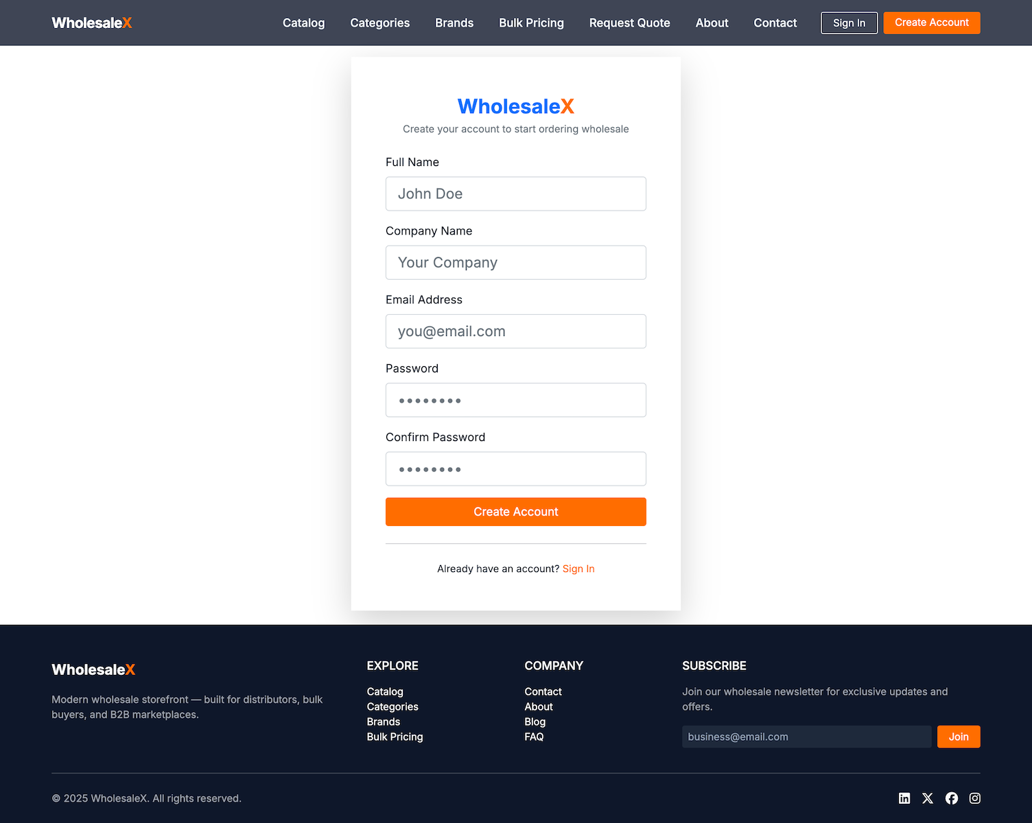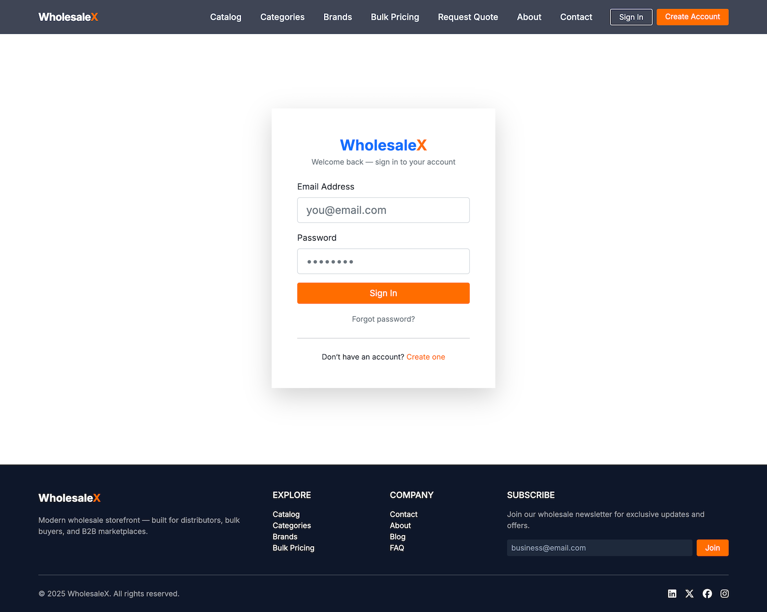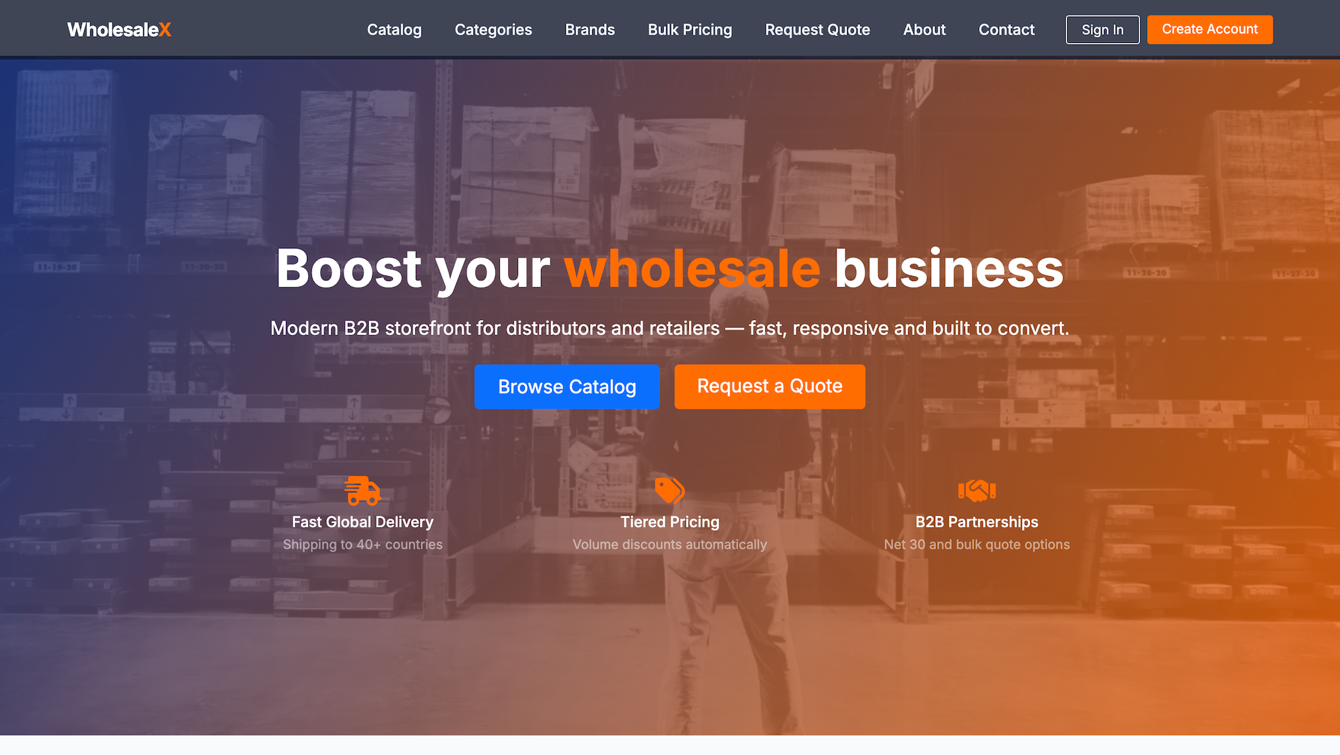 WholesaleX — Modern B2B Wholesale Storefront Template Website Template