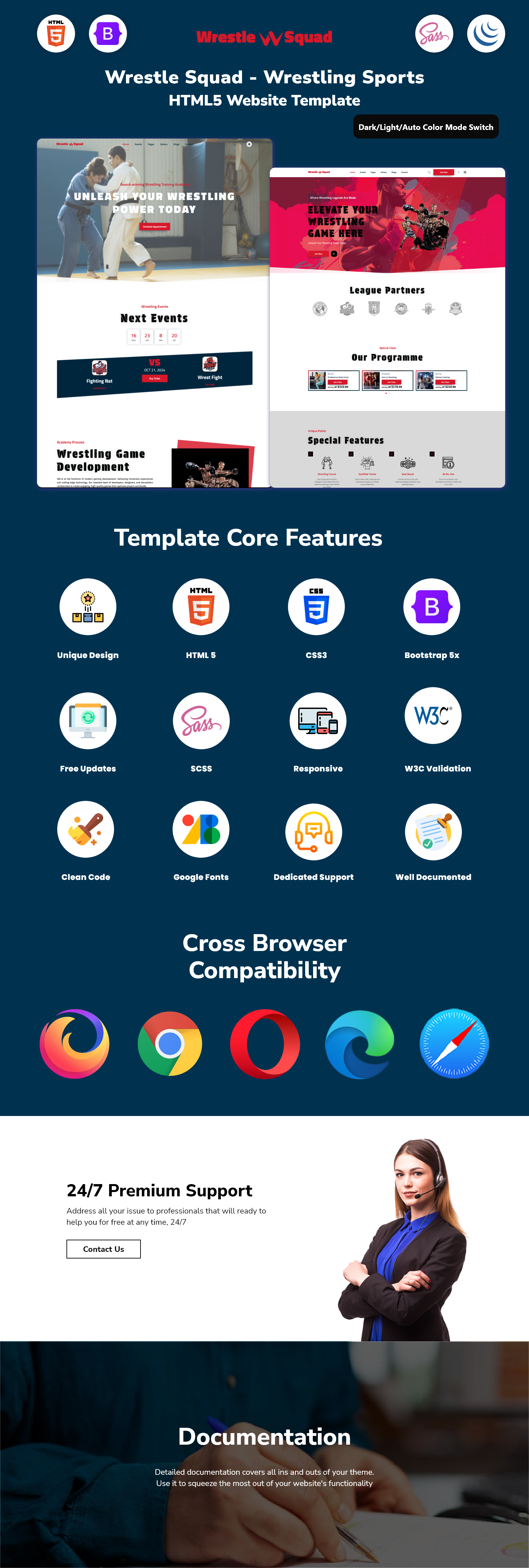 Welcome to our Newest wrestling website template, designed for enthusiasts and professionals alike! Featuring a bold layout with eye-catching graphics, this template showcases match highlights, wrestler profiles, and event schedules. Easily customizable, it Incorporate many sections for news updates, merchandise, also fan engagement. Theme has responsive design, your site will good looking on any device, ensuring fans stay connected. Best choice for wrestling promotions, gyms, and fan clubs, this html5 theme offers the ultimate platform to celebrate the excitement of the ring!