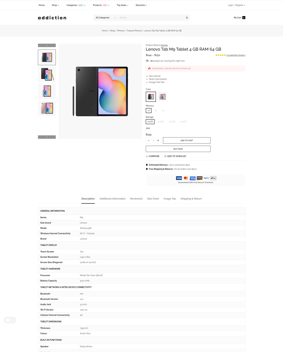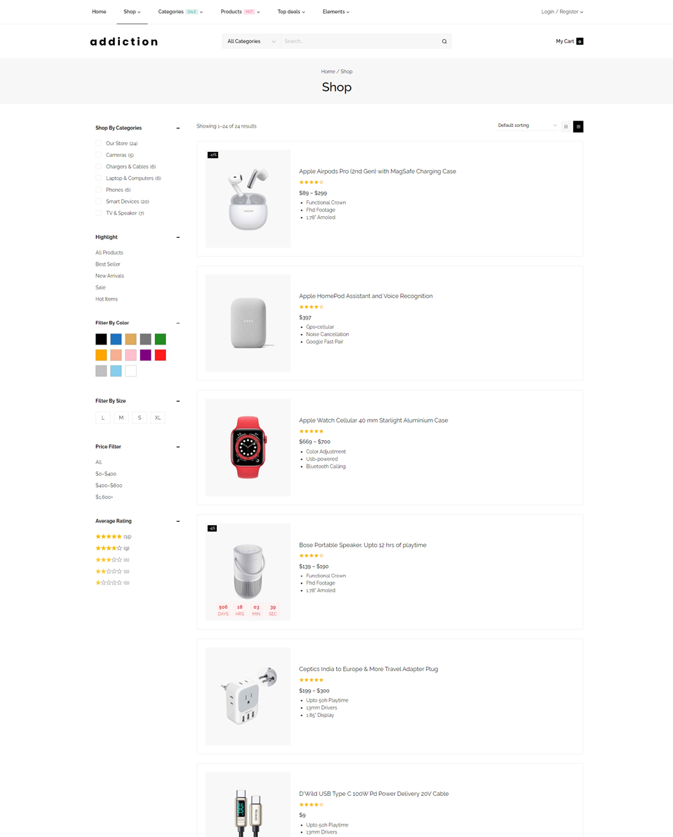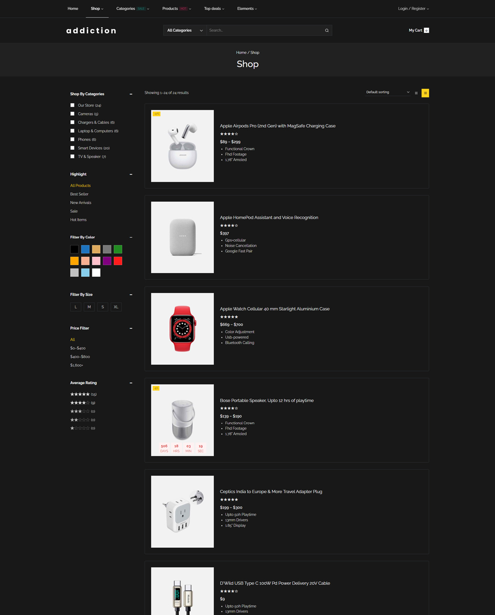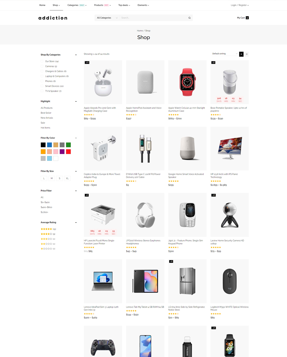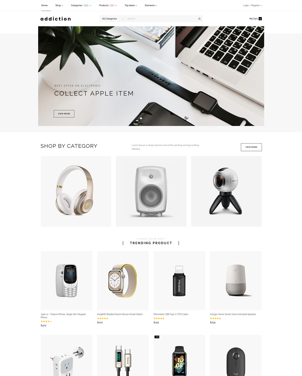 Addiction combines bold aesthetics with clean, user-focused layouts to ensure your products shine. With multiple pre-built homepage demos, category styles, and product pages, it adapts effortlessly to any niche. The intuitive, drag-and-drop Elementor page builder lets you customize layouts, colors, fonts, and sections without writing a single line of code.