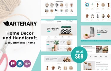Use our beautiful Arterary WooCommerce Theme to transform your handcrafted goods, ceramic artist business, and home décor. Designed specifically for craftsmen, this theme raises your online presence by ingeniously fusing creativity and usefulness. Displaying your one-of-a-kind works, from exquisite pottery to handmade dcor, is effortless with its elegant style and user-friendly features. With capabilities for order processing, inventory management, and more, WooCommerce makes managing your store easy. There are lots of customization possibilities that make it simple to express your creative vision. With responsive design, your consumers can purchase with ease on any device and have a flawless experience. Take advantage of our Arterary - Home Decor, Handicraft, and Ceramic Artist WooCommerce Theme to enhance your online artisanal business and stimulate creativity!
