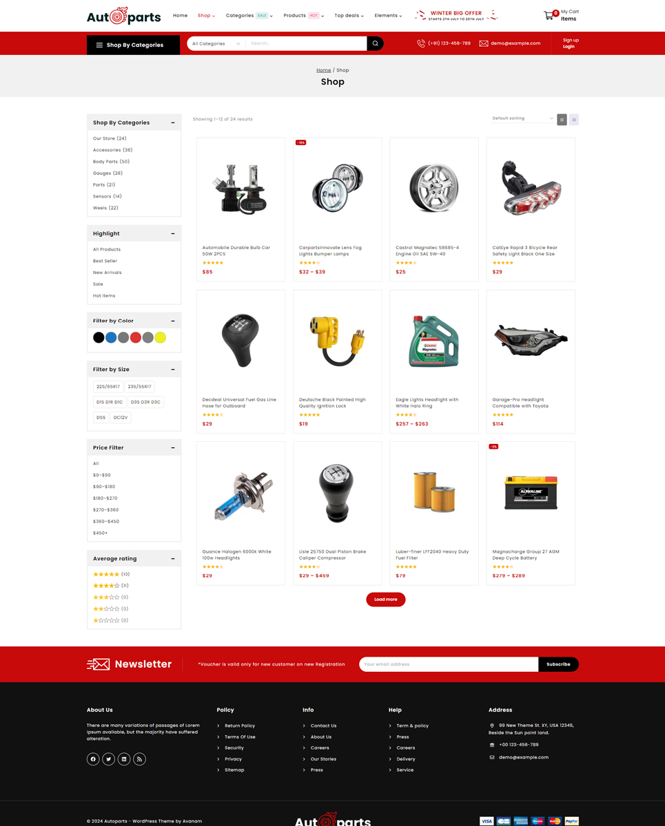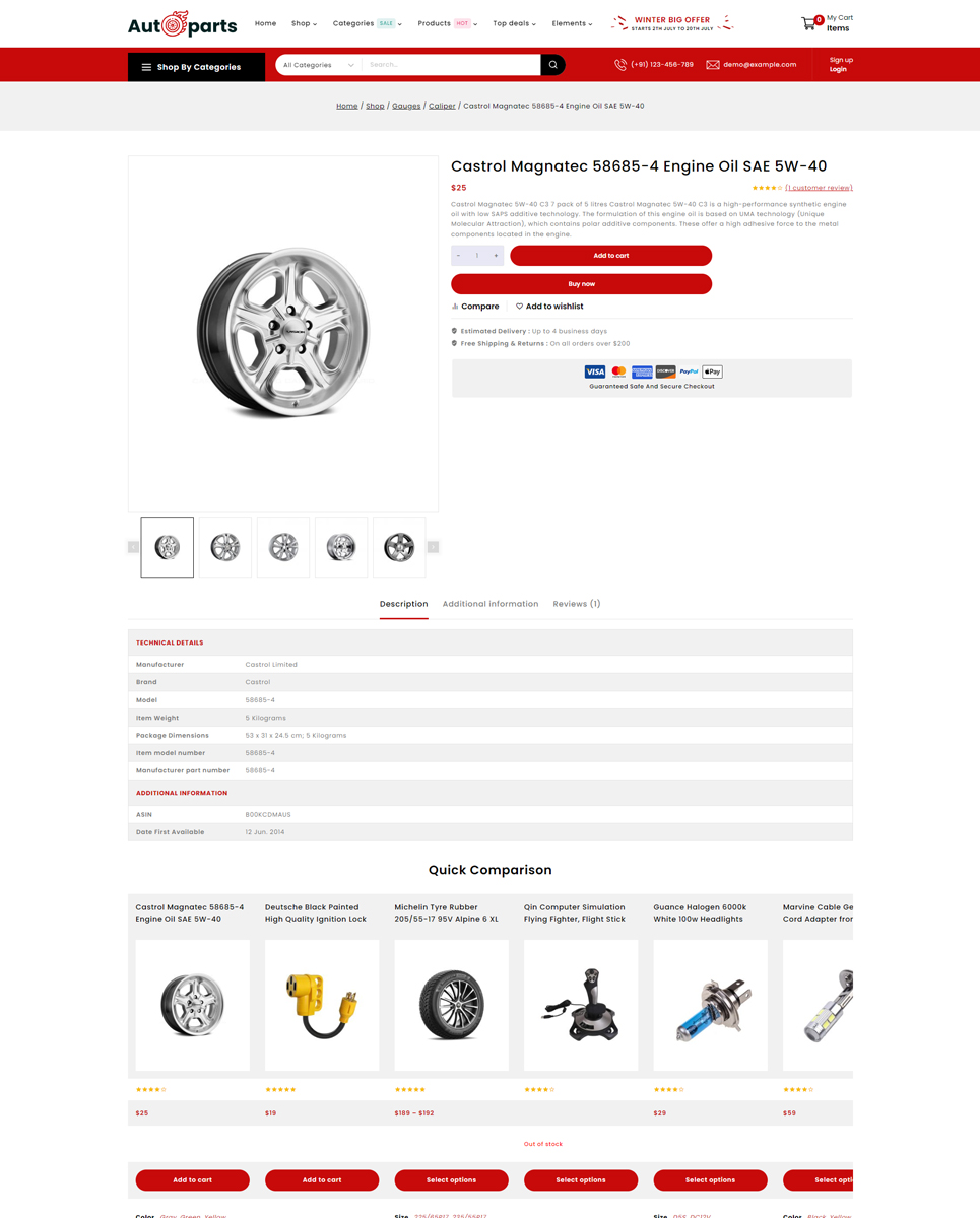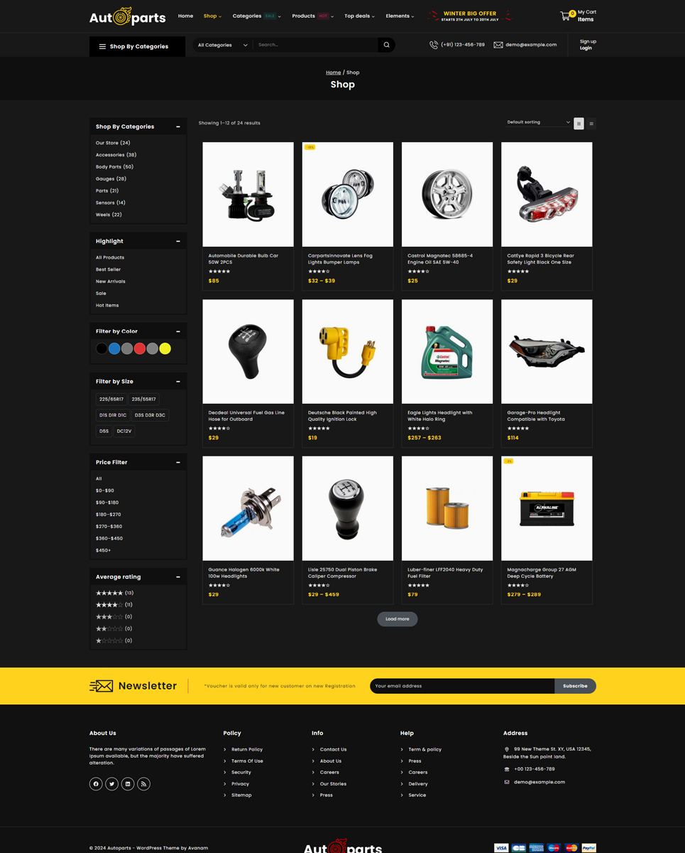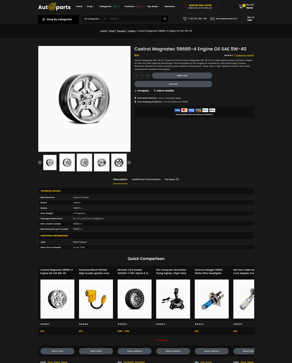 Autoparts - Mega Shop Multipurpose Responsive WooCommerce Store is the stunning store for any auto parts, auto equipment, Spare Parts, Cars, Tools, Accessories, or any online shopping stores: Cars & Motorcycles, Car Templates, Car Repair Templates, Car Dealer Templates, Auto Parts Templates, Wheels & Tires Templates, Electronics Templates, Car Templates, Car Dealer Templates, Auto Parts Templates. Autopart store design with WP-Bakery plugin, supports WPML, MailChimp, Revolution Slider, and Easy 1-Click Demo Import. It is looking good with its colors combination.