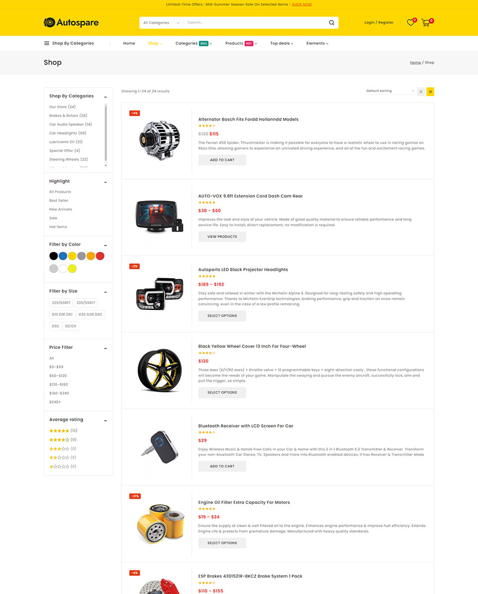 Autospare features an advanced search functionality that helps customers quickly find the products they are looking for. Included powerful Ajax filtering options that allow customers to refine their product searches without reloading the page. This enhances the shopping experience by making it faster and more convenient. Also, The theme includes various Ajax features, such as Ajax add-to-cart, which improves the overall user experience by allowing customers to add products to their cart without page reloads.