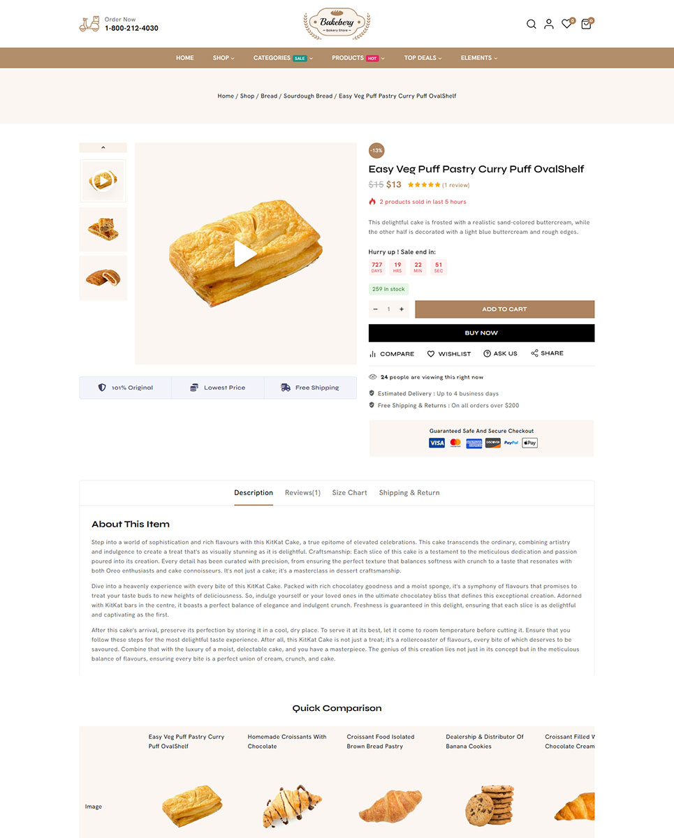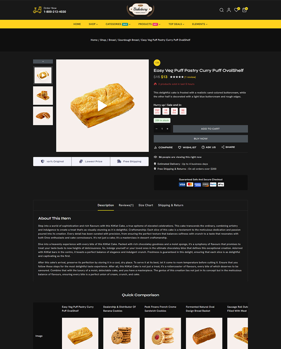 Bakebery includes features like product quick view, wishlist and compare, Ajax add to cart, and advanced product filter, ensuring a smooth and enjoyable shopping experience for your customers. With full WooCommerce compatibility, flexible header and footer designs, theme customizer settings, and a built-in light/dark mode switch, this theme is both functional and visually delightful.