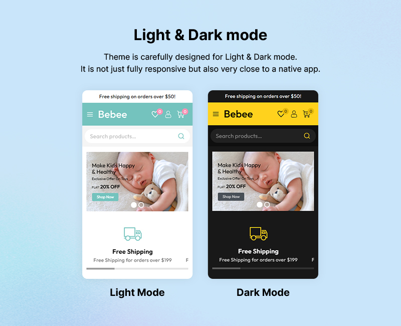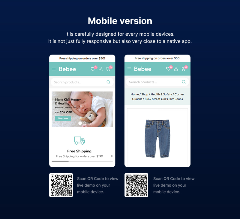 Introducing Bebee, the perfect WooCommerce theme designed exclusively for baby and infant fashion stores, as well as toy shops. Created by Webdigify, Bebee offers a delightful blend of charming design, robust functionality, and seamless user experience, making it the ideal choice for your online baby store.