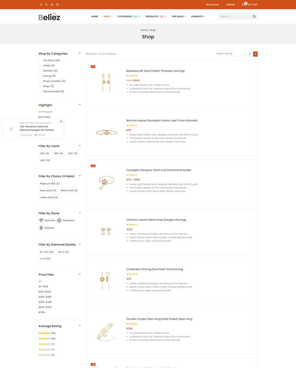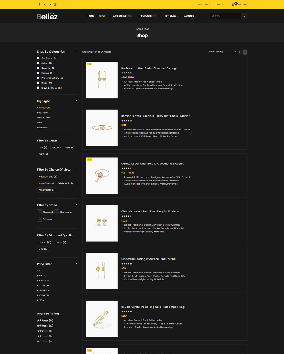 Beliez - Jewelry Shop and Fashion Store WooCommerce Theme