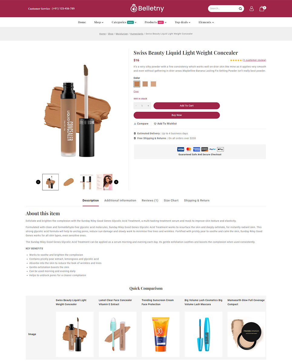 Welcome to Belletny, where beauty meets technology in a seamless fusion of elegance and functionality. Our meticulously crafted theme is designed to elevate your online shopping experience to new heights, offering a plethora of features tailored specifically for beauty, cosmetics, skincare, makeup kit, salon, spa, haircare items, perfumes and beauty care products.