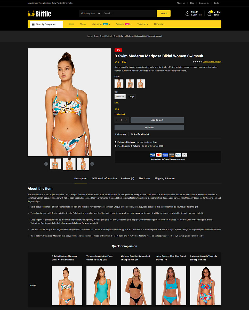 Biittle - Lingerie & Swimwear Store Elementor WooCommerce Responsive Theme WooCommerce Theme