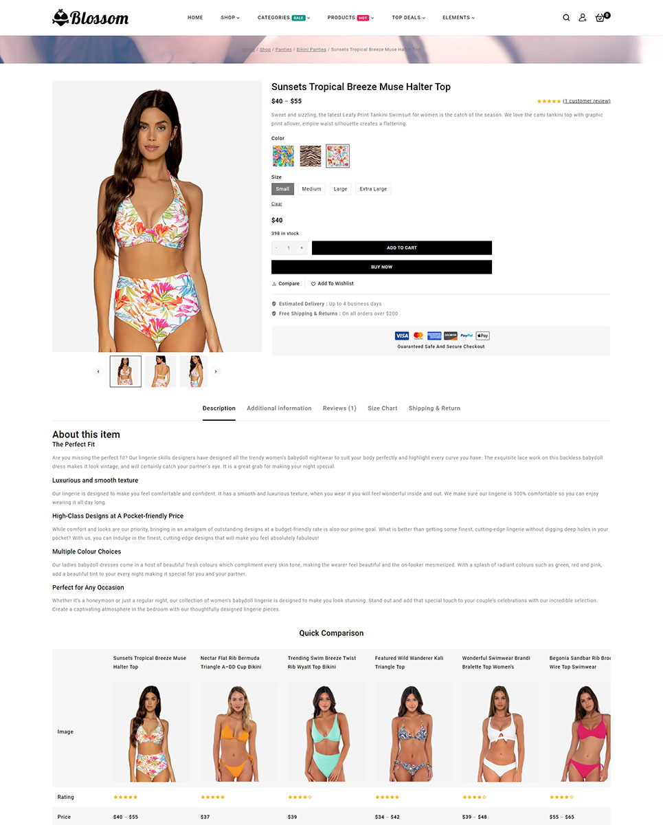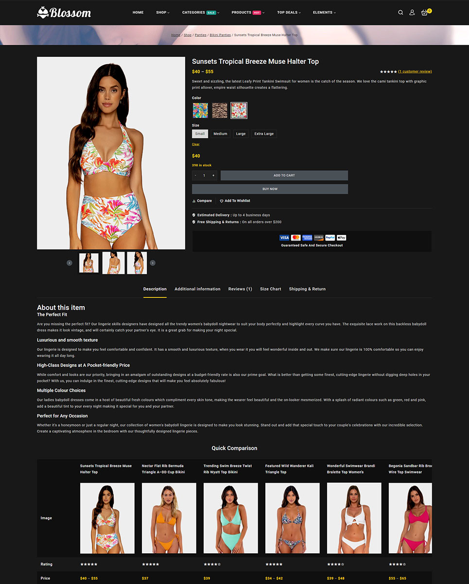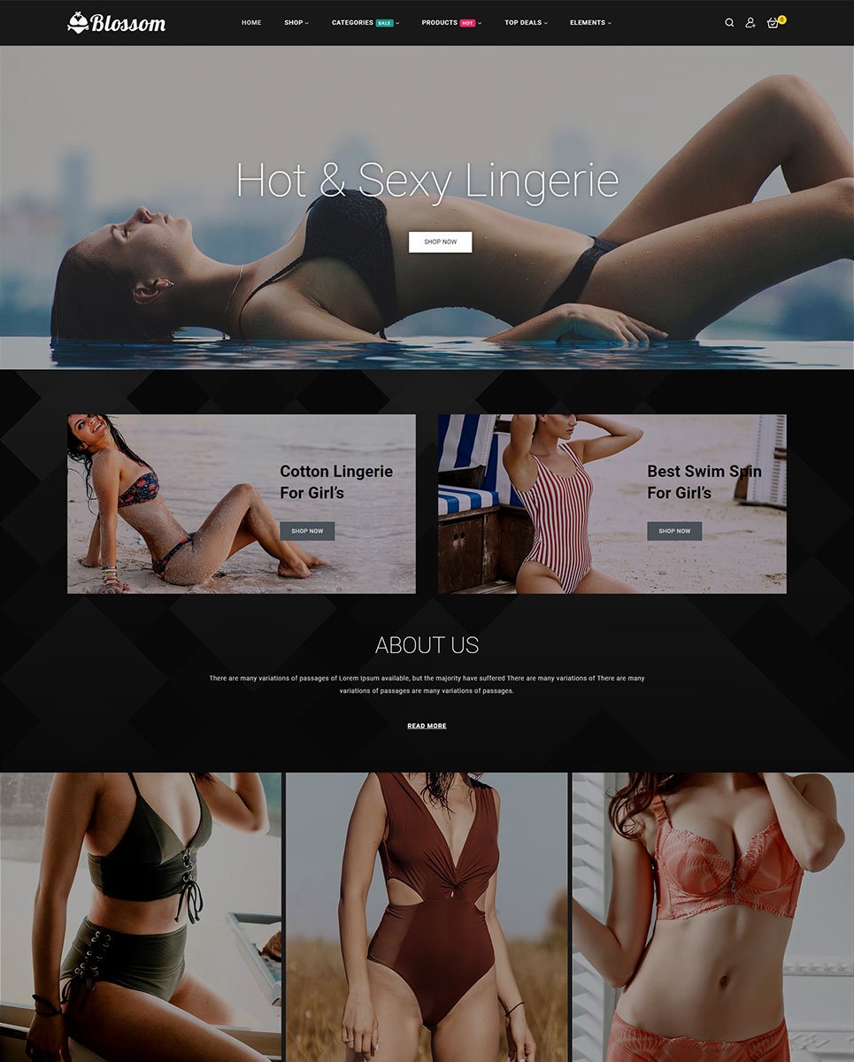 Blossom is an elegant and sophisticated WordPress theme meticulously crafted for Lingerie, Underwear, Bikini, Bra, Panties, Adult, Sex Toys, Fashion, Apparels, Beauty, Jewelry and Cosmetics stores. With its seamless integration of WooCommerce, Elementor, and a host of advanced features, Blossom empowers you to create a stunning online presence for your lingerie business effortlessly.