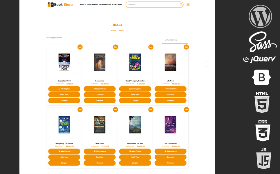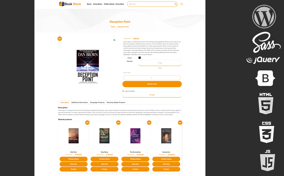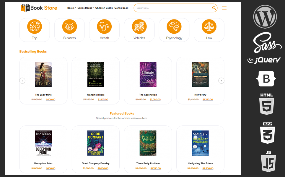 It includes advanced special areas designed in corporate concept for bookstores. With this template, you will be able to show your products professionally.