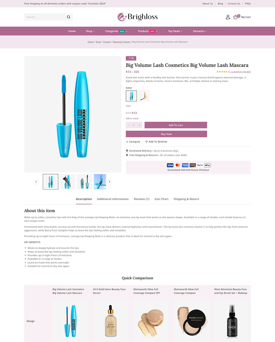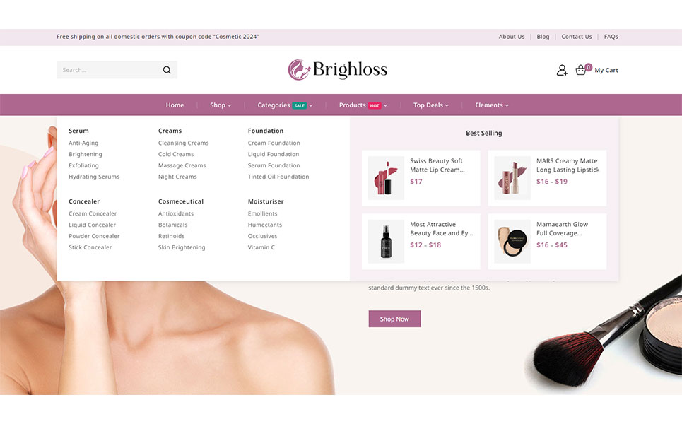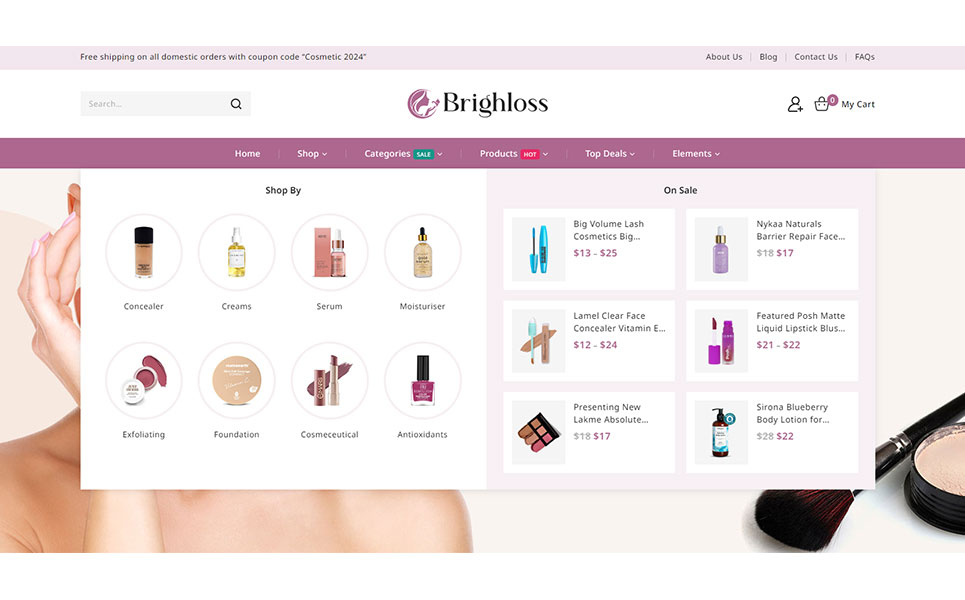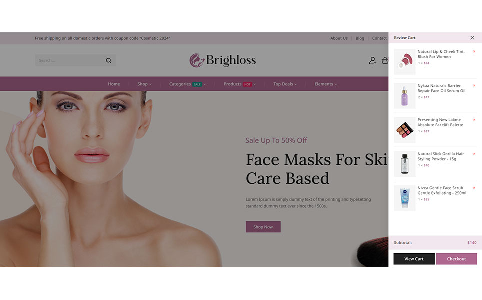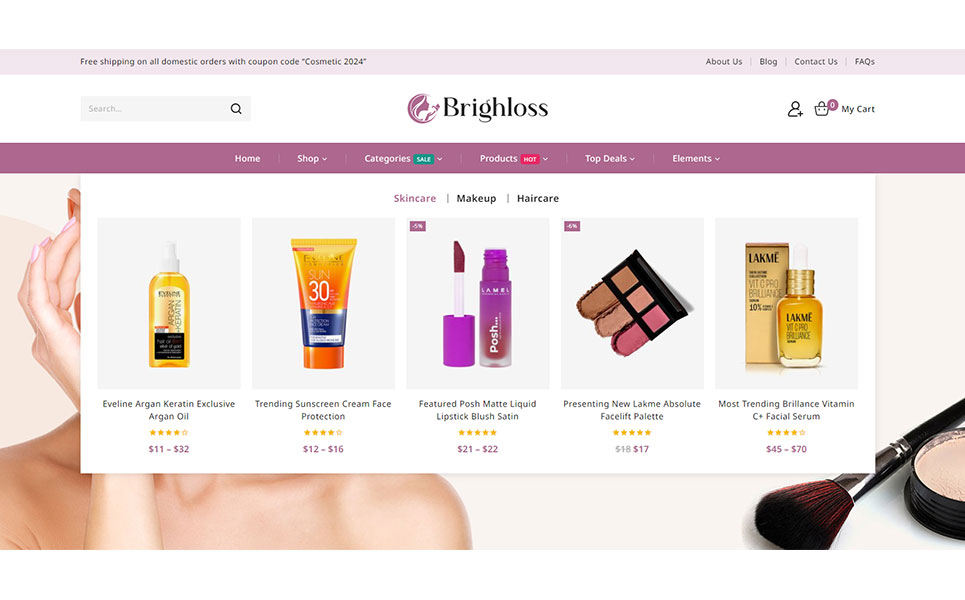 Brighloss - Beauty & Cosmetic Store Elementor WooCommerce Responsive Theme WooCommerce Theme