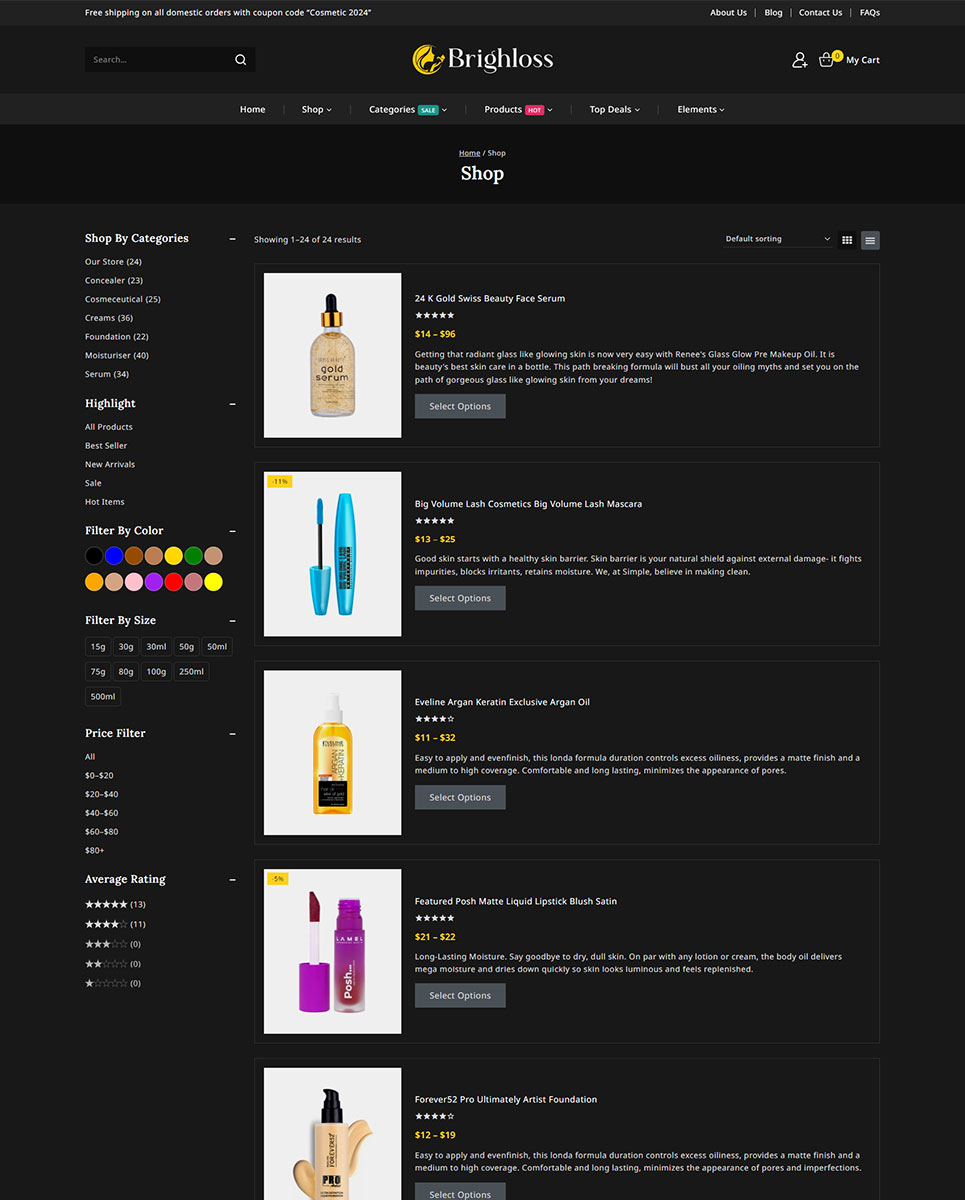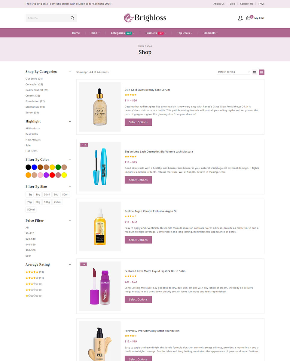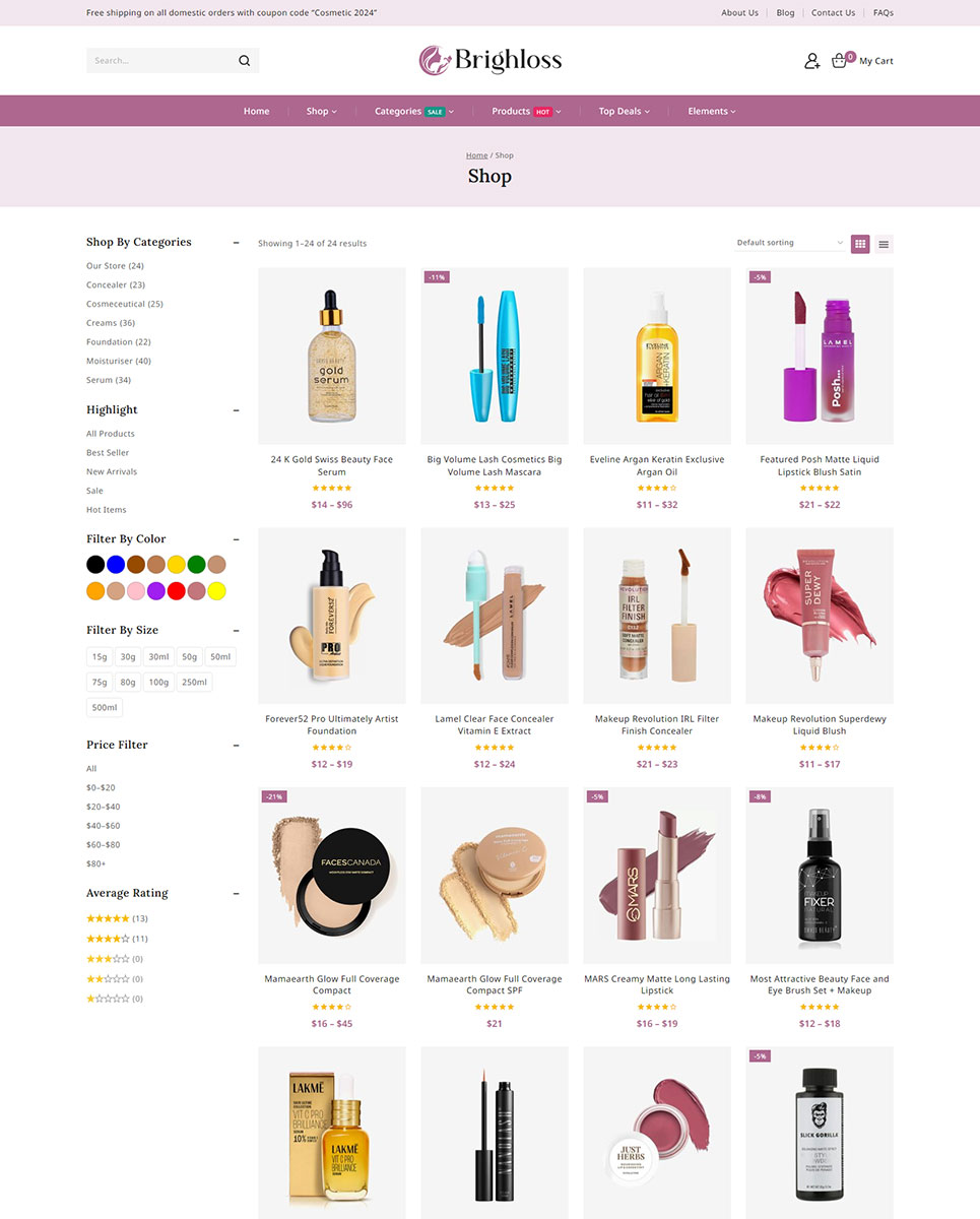 Brighloss - Beauty & Cosmetic Store Elementor WooCommerce Responsive Theme WooCommerce Theme
