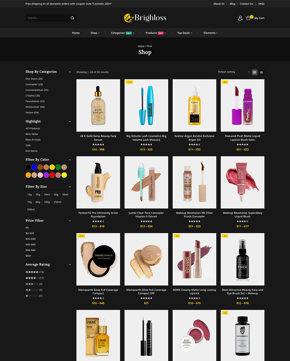 Welcome to Brighloss, the ultimate solution for those seeking to establish a captivating online presence in the beauty and cosmetics industry. Designed with elegance and functionality in mind, Brighloss is an Elementor WooCommerce Responsive Theme that empowers you to create a stunning online beauty and cosmetic store with ease. Brighloss boasts a sleek and modern design that embodies the essence of beauty and sophistication. Let your products shine with a clean layout that highlights their allure, ensuring a memorable browsing experience for your visitors.