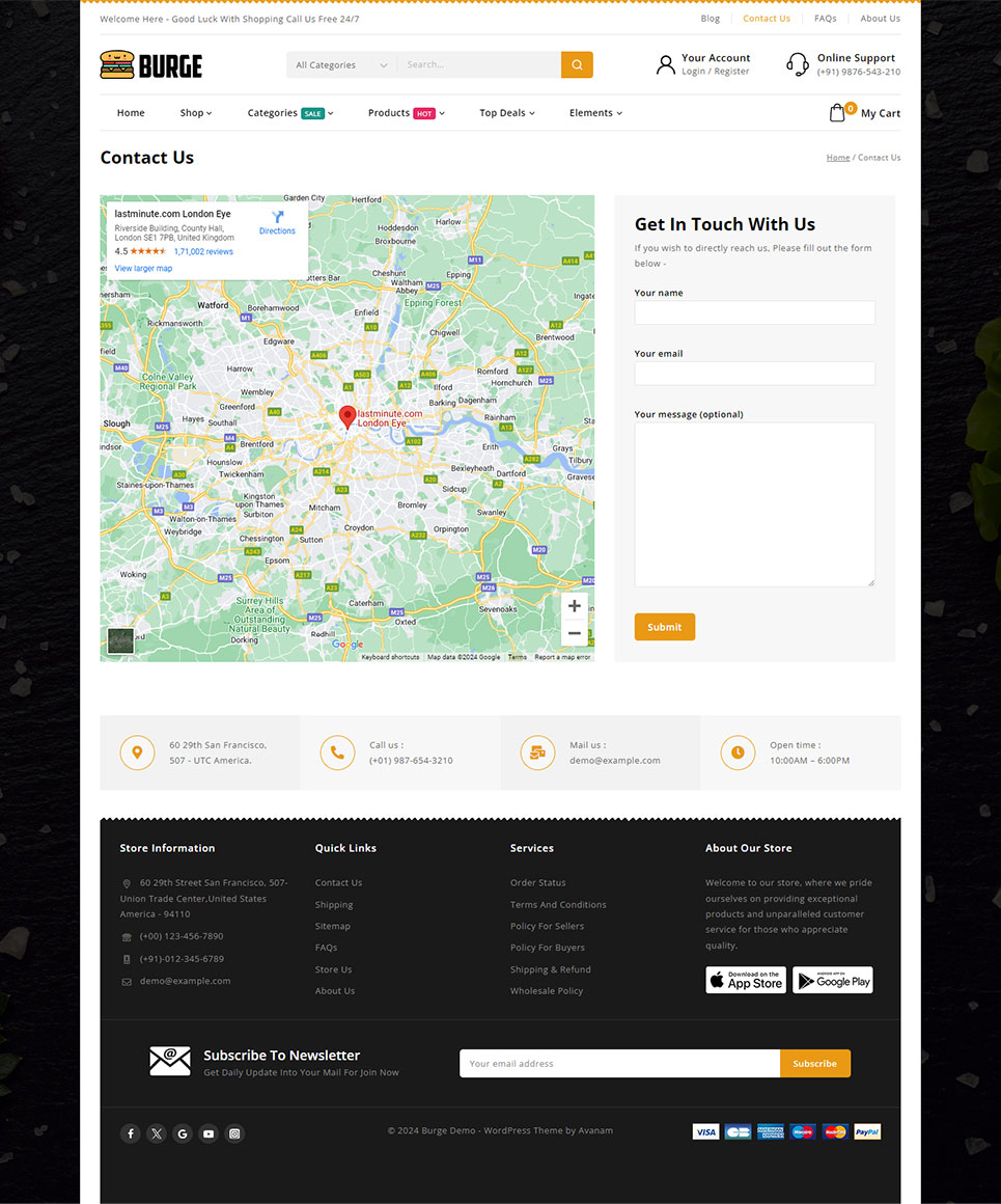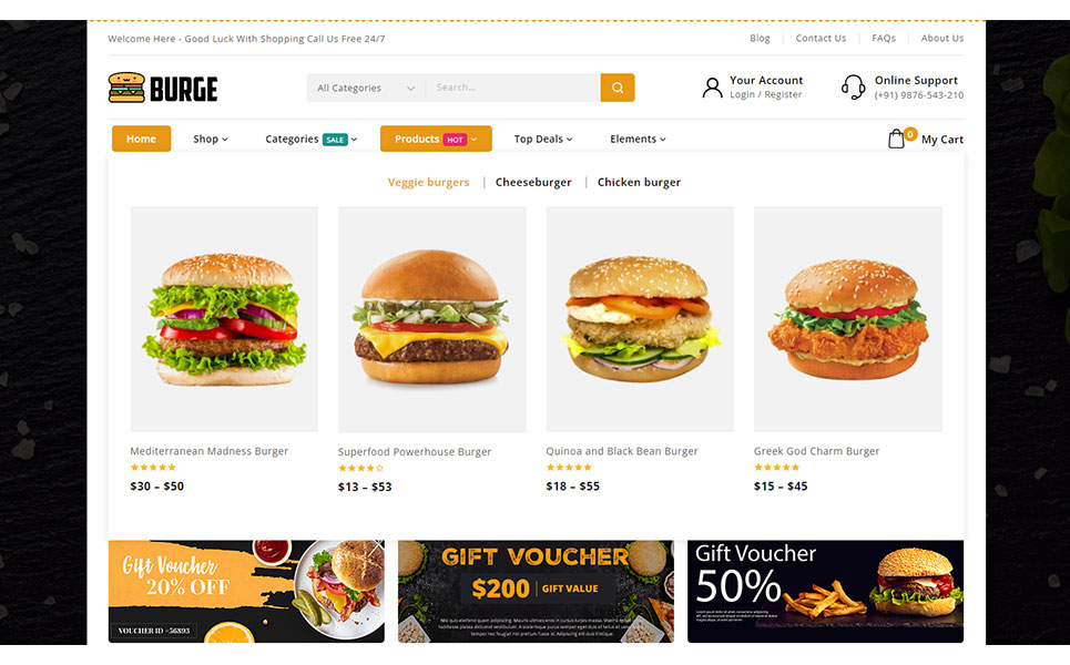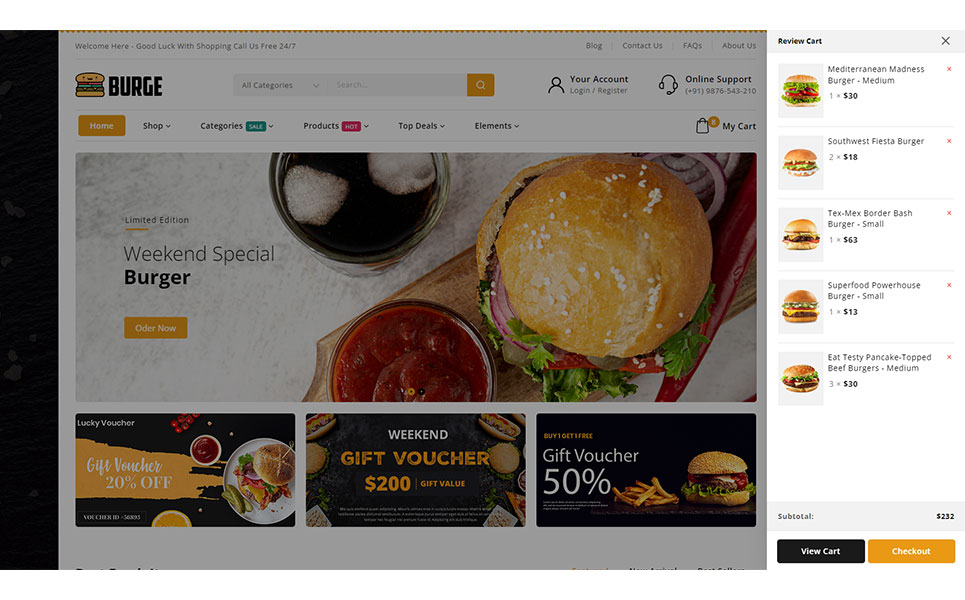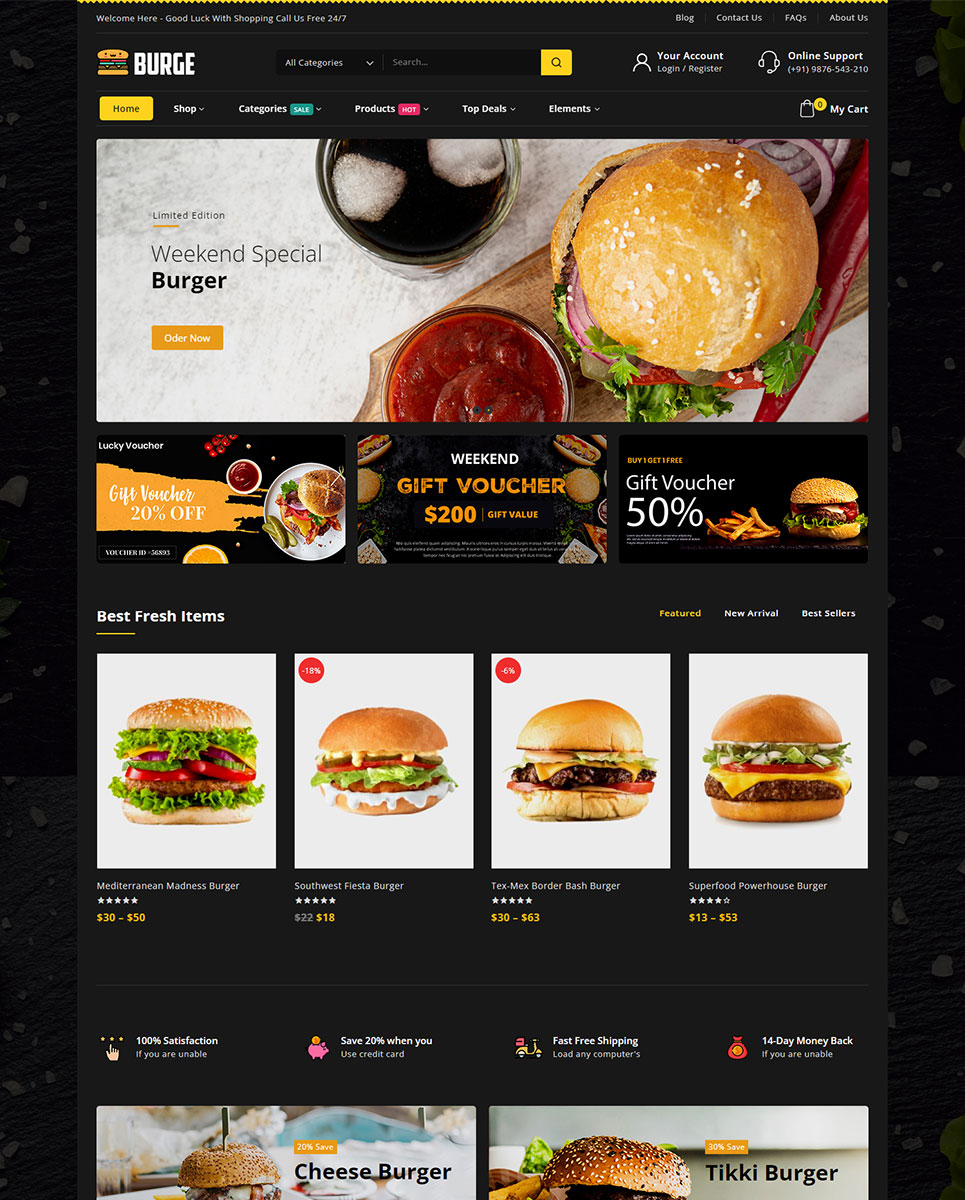Burge is a carefully crafted WordPress theme designed specifically for fast food stores, burger, pizza, spice, sweet, snacks, coffee, cafe and restaurant shop with seamlessly integrating Elementor and WooCommerce. With a focus on delicious design and seamless functionality, Burge provides a comprehensive platform to showcase and sell mouthwatering fast food items. Burge offers a box layout option, adding a modern and visually appealing touch to your fast food store. This layout option provides a clean and organized display of your menu items, ensuring that visitors can easily browse and select their favorite treats.