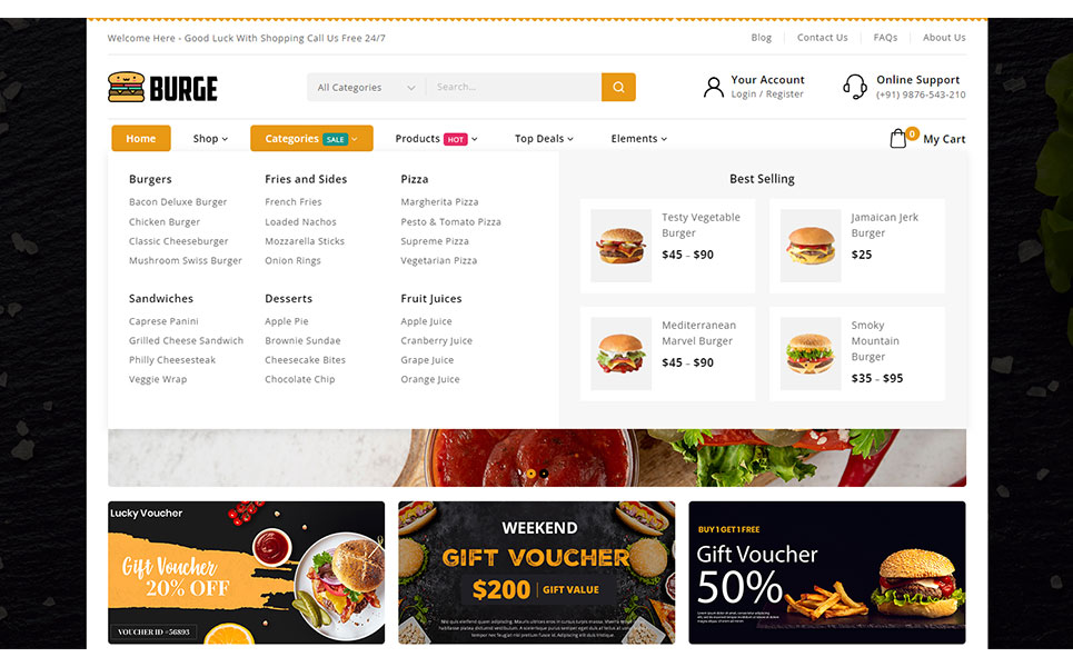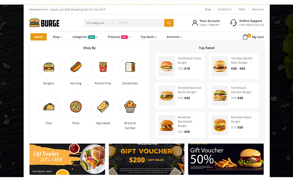 With Burge's integration with Elementor customize every aspect of your website's design and layout using the intuitive drag-and-drop interface, ensuring your fast food store reflects your brand's unique personality. With integrated Revolution Slider feature create visually stunning slideshows to showcase promotions, highlight new menu items, or tempt visitors with mouthwatering imagery.
