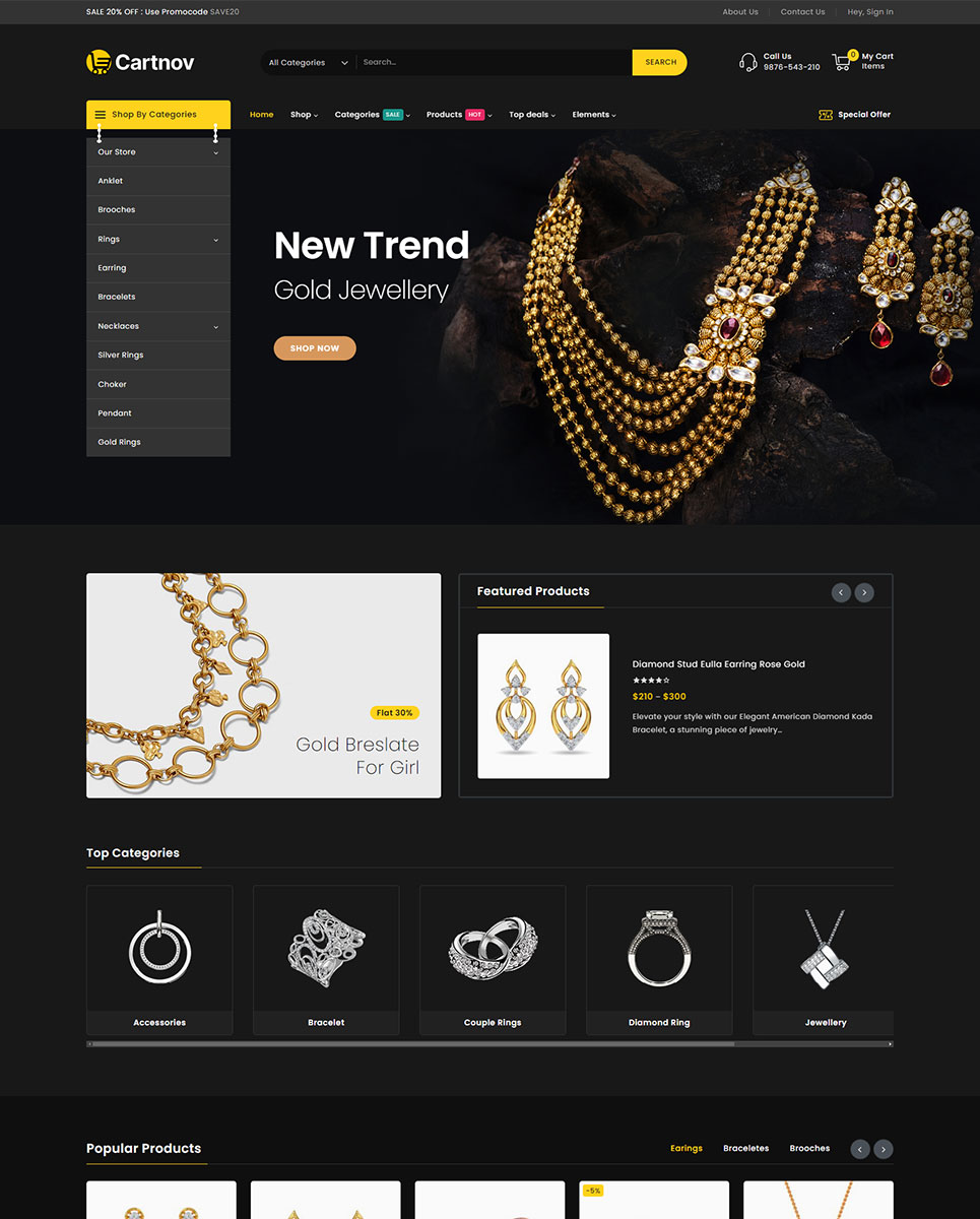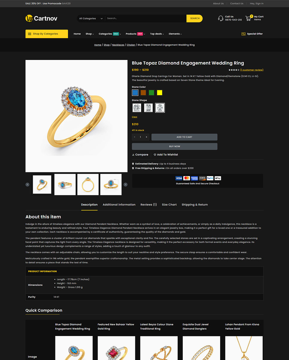 "Cartnov" - a luxurious and feature-rich Elementor WooCommerce Responsive Theme meticulously crafted for diamond jewelry stores with its exquisite design, seamless integration of advanced features. Harness the power of Elementor's intuitive drag-and-drop interface to customize every aspect of your website effortlessly. Create stunning pages, unique layouts, and captivating product showcases with ease.