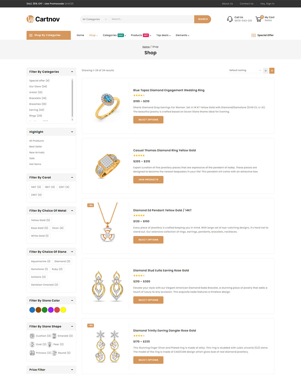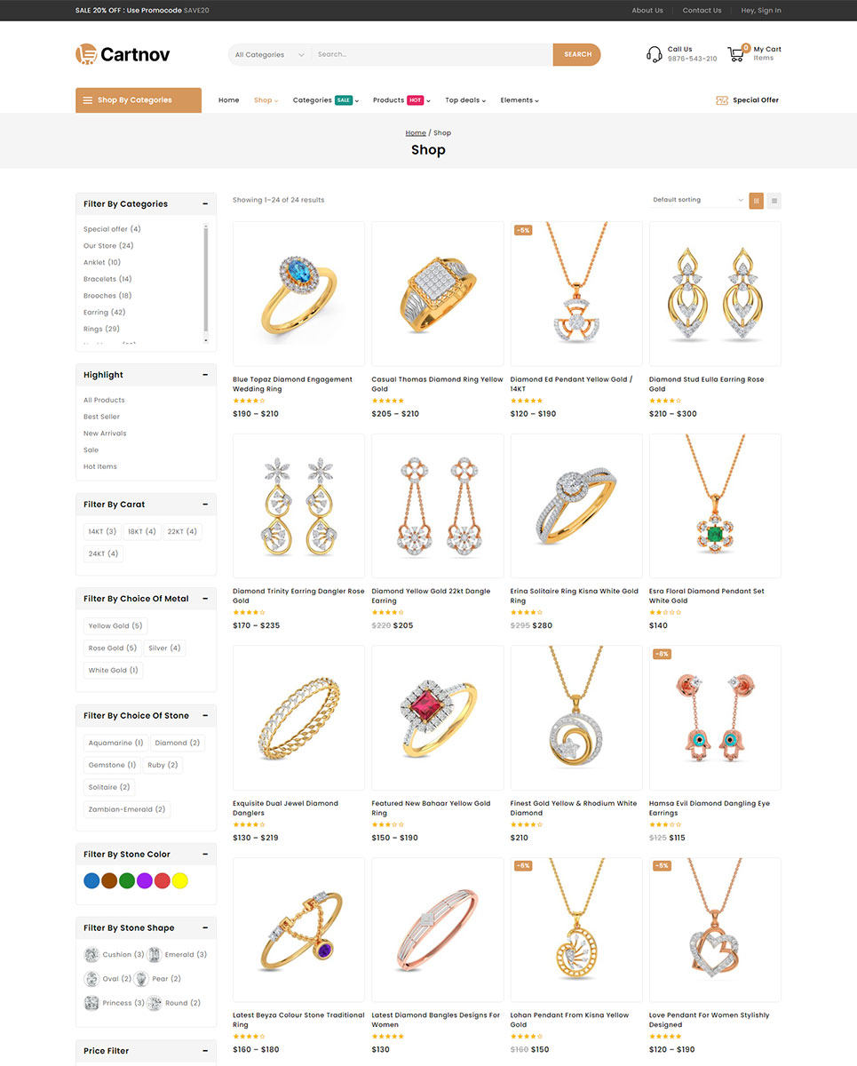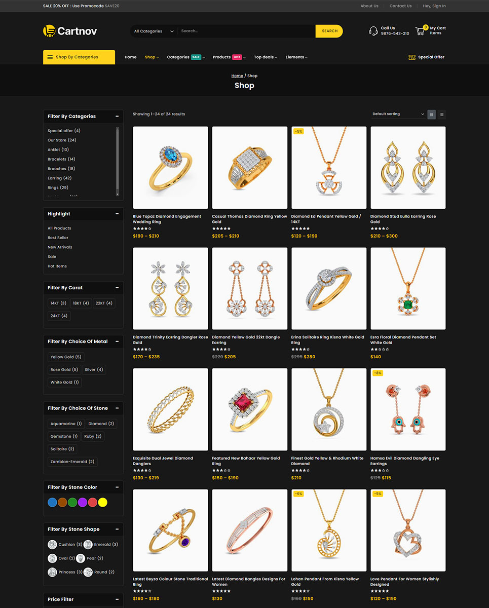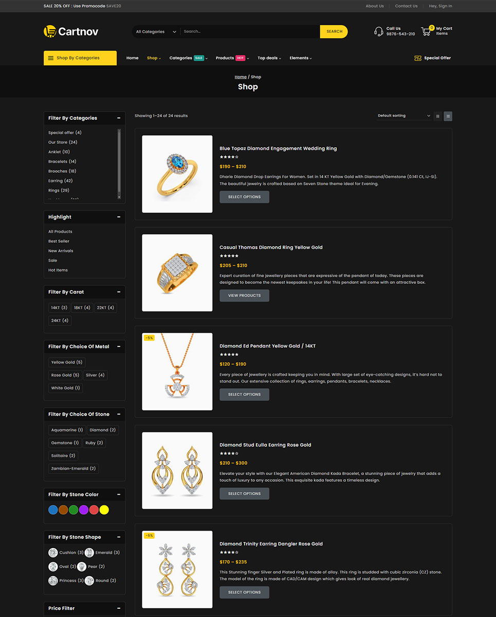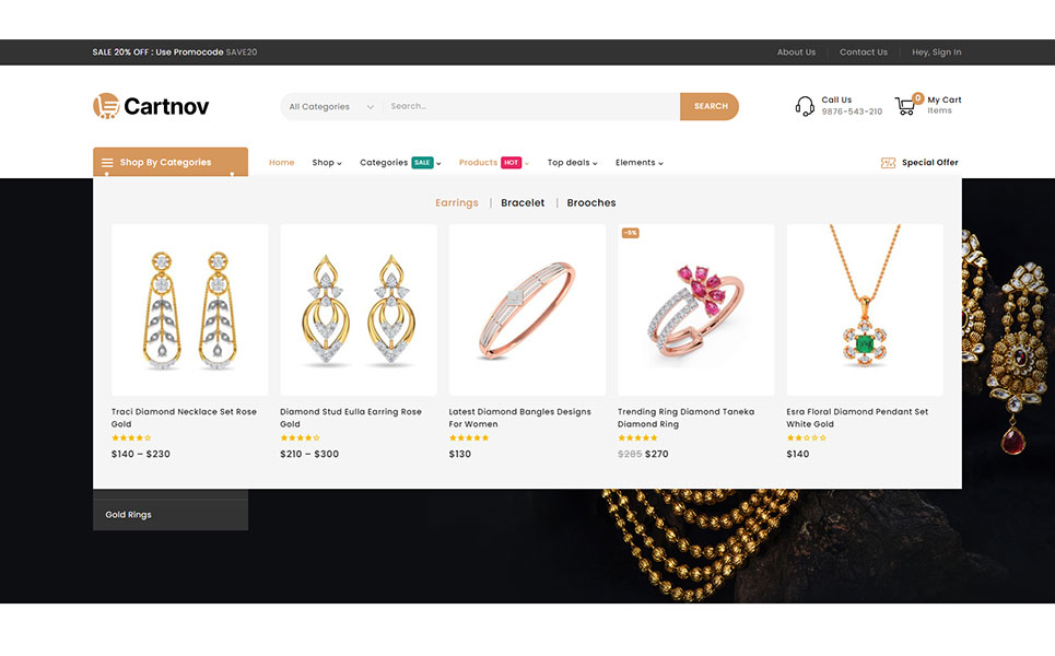 Cartnov - Diamond Jewelry Store Elementor WooCommerce Responsive Theme WooCommerce Theme