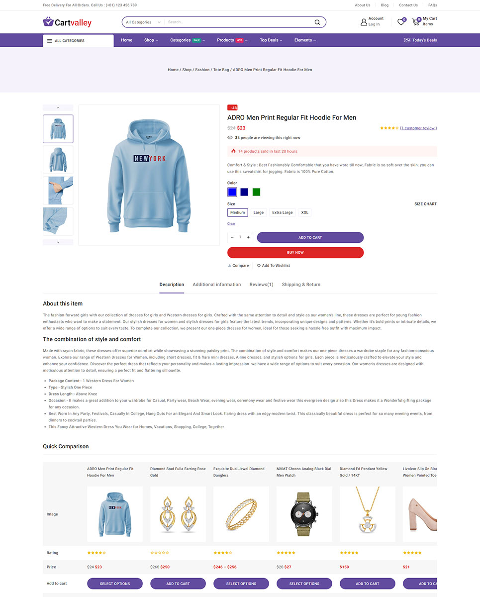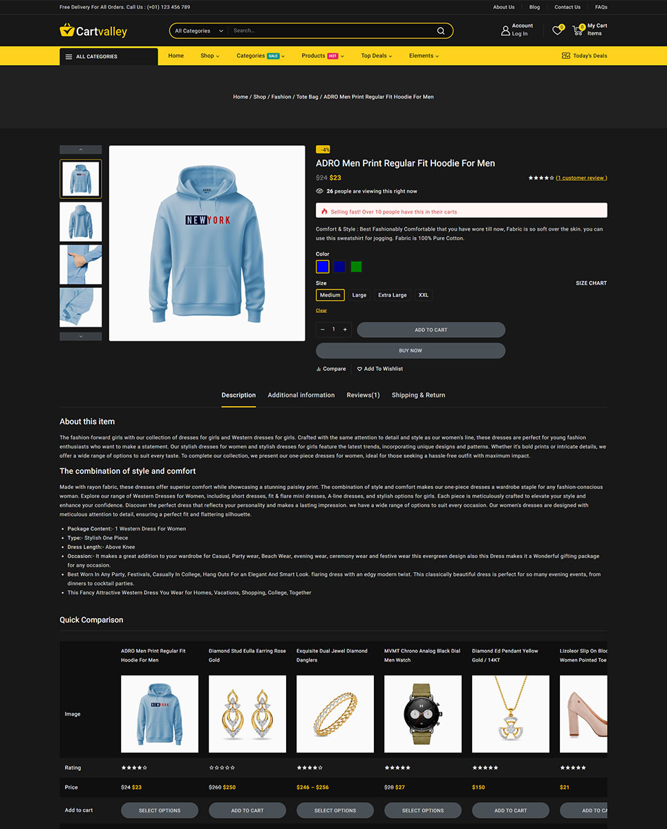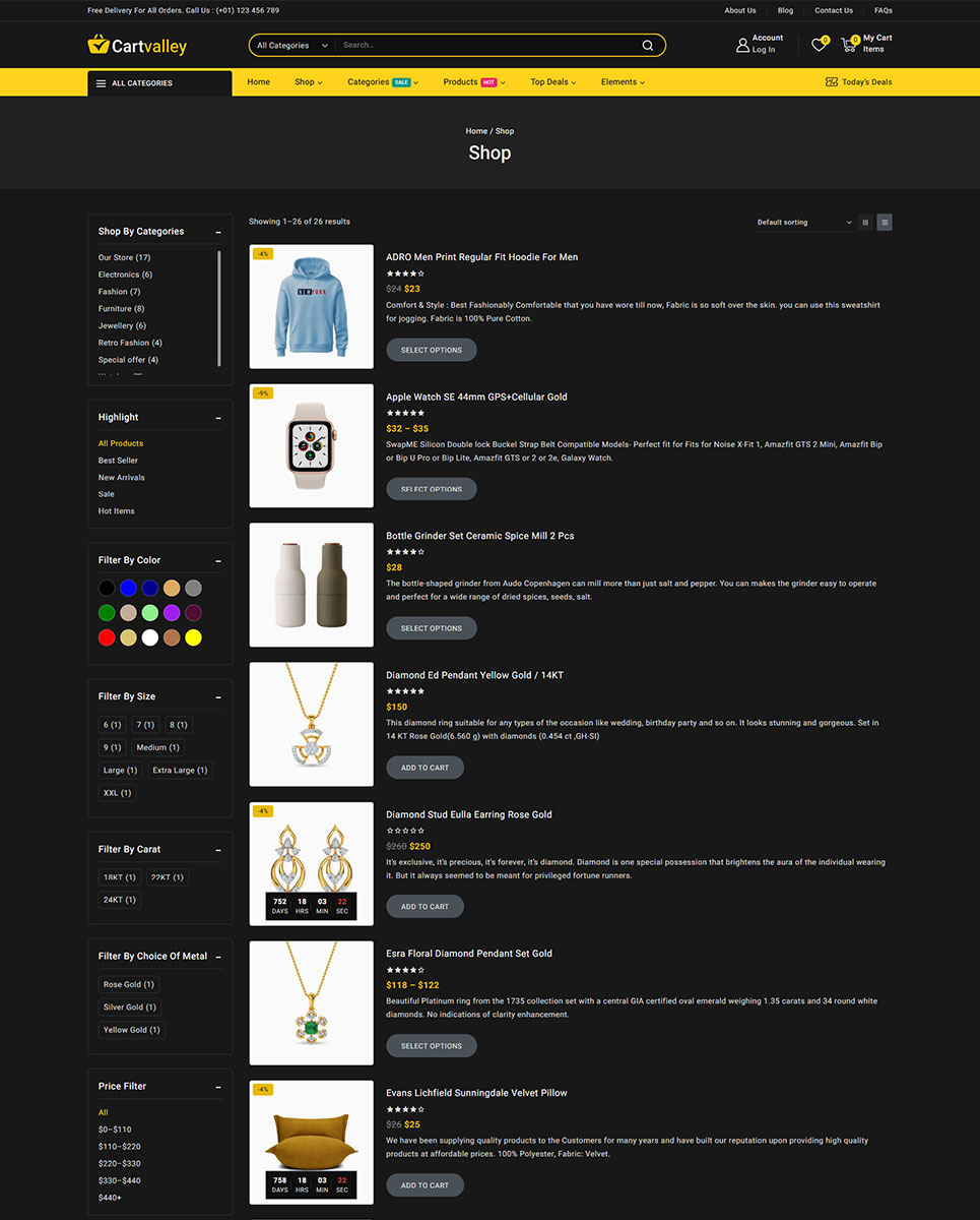 Cartvalley is a versatile and feature-rich Elementor WooCommerce theme designed to cater to a wide range of online stores. Whether you're running a fashion boutique, electronics shop, furniture store, or any other e-commerce business, Cartvalley provides a modern, responsive, and fully customizable platform to showcase your products and deliver an exceptional shopping experience.