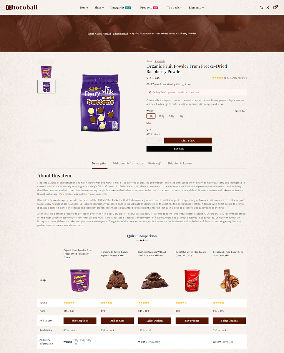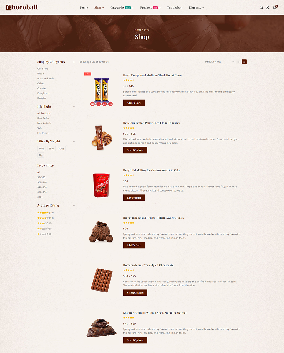 Chocoball - Chocolate, Cake and Bakery Store Elementor WooCommerce Responsive Theme WooCommerce Theme