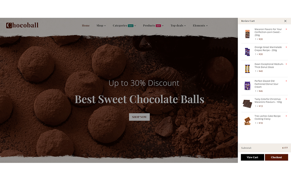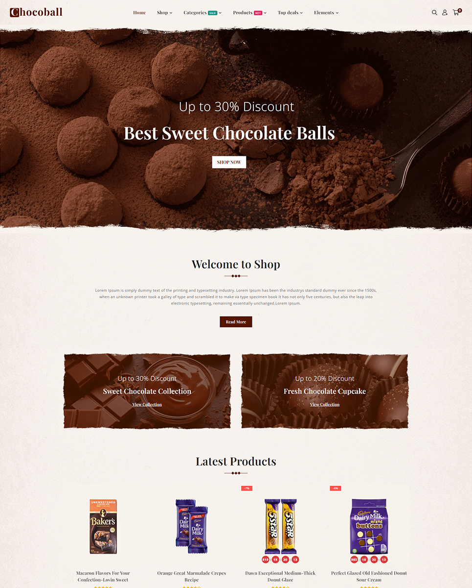Get Chocoball right away and create a beautiful store with little effort. It is a pleasant and lovely template design.