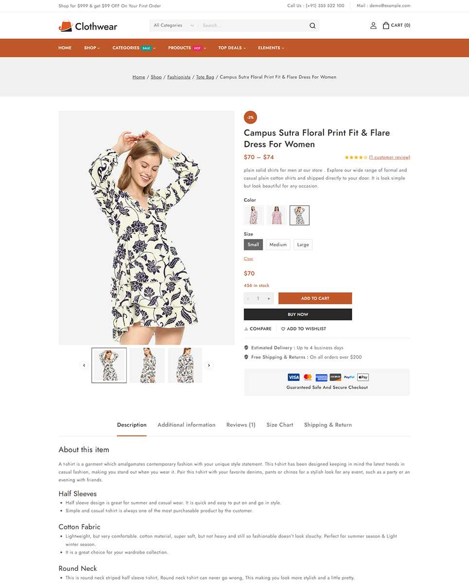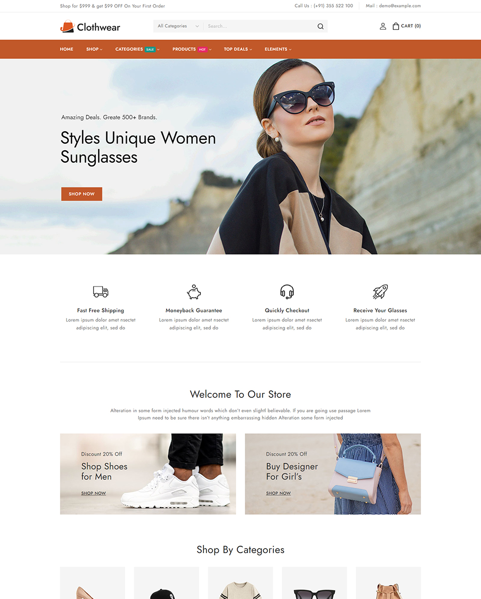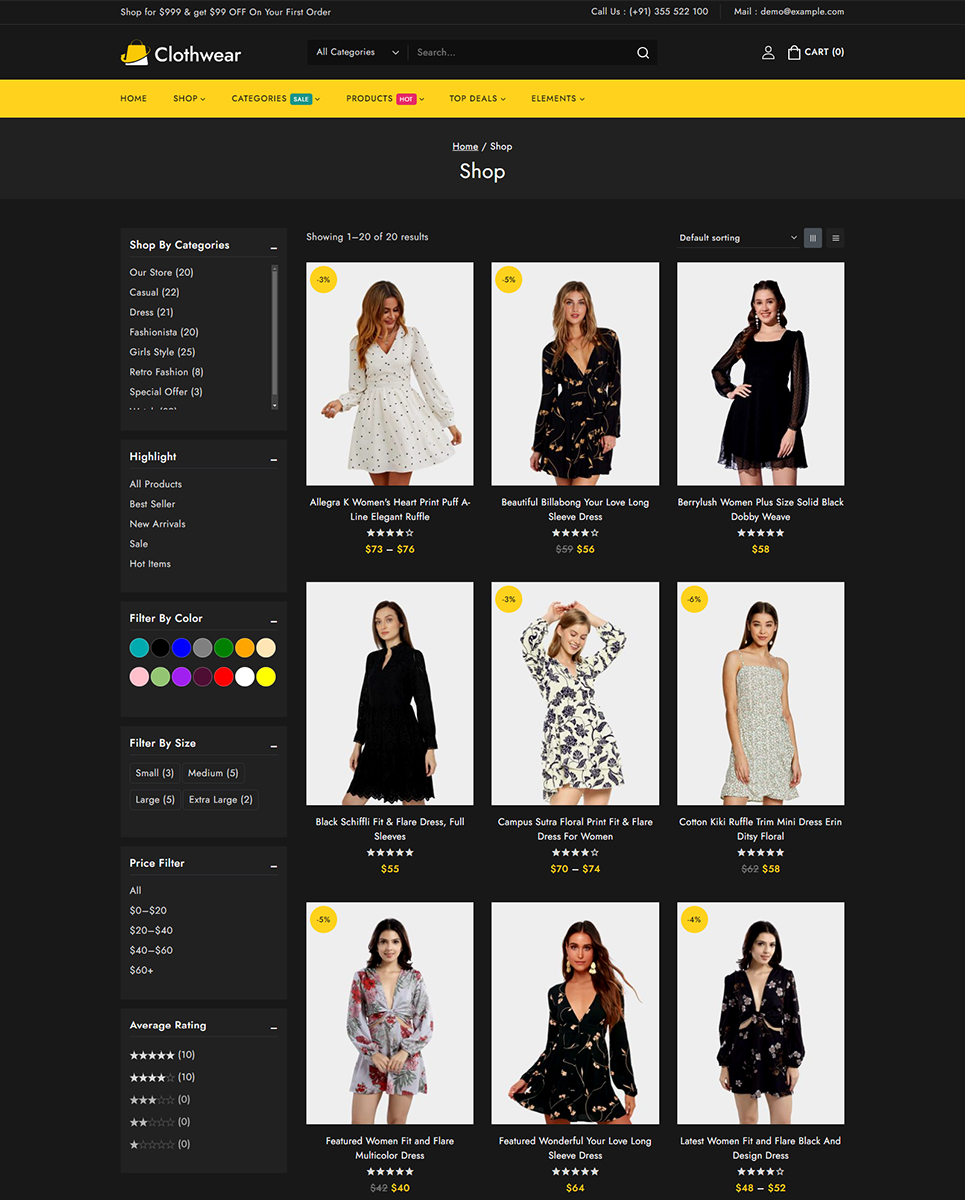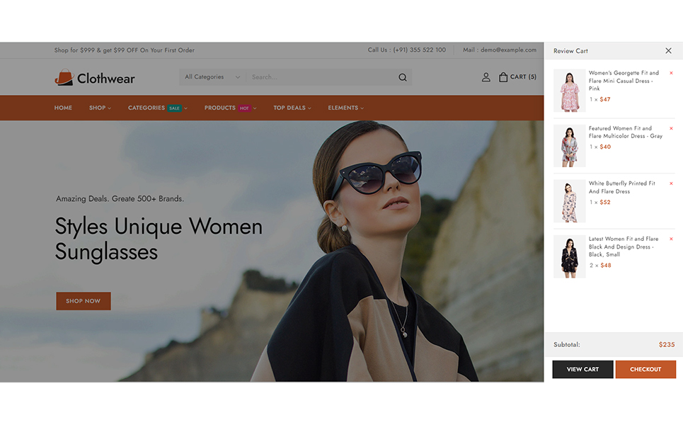Welcome to Clothwear, the premier Elementor WooCommerce responsive theme designed exclusively for women’s fashion stores. Whether you're curating chic everyday wear, elegant evening gowns, or trendy accessories, Clothwear provides the perfect platform to showcase your stylish collections with flair and sophistication. Clothwear features an elegant, modern design that perfectly captures the essence of contemporary women’s fashion. Whether you’re showcasing casual wear, formal dresses, or accessories, Clothwear offers dedicated layouts that highlight your products in the best possible way.