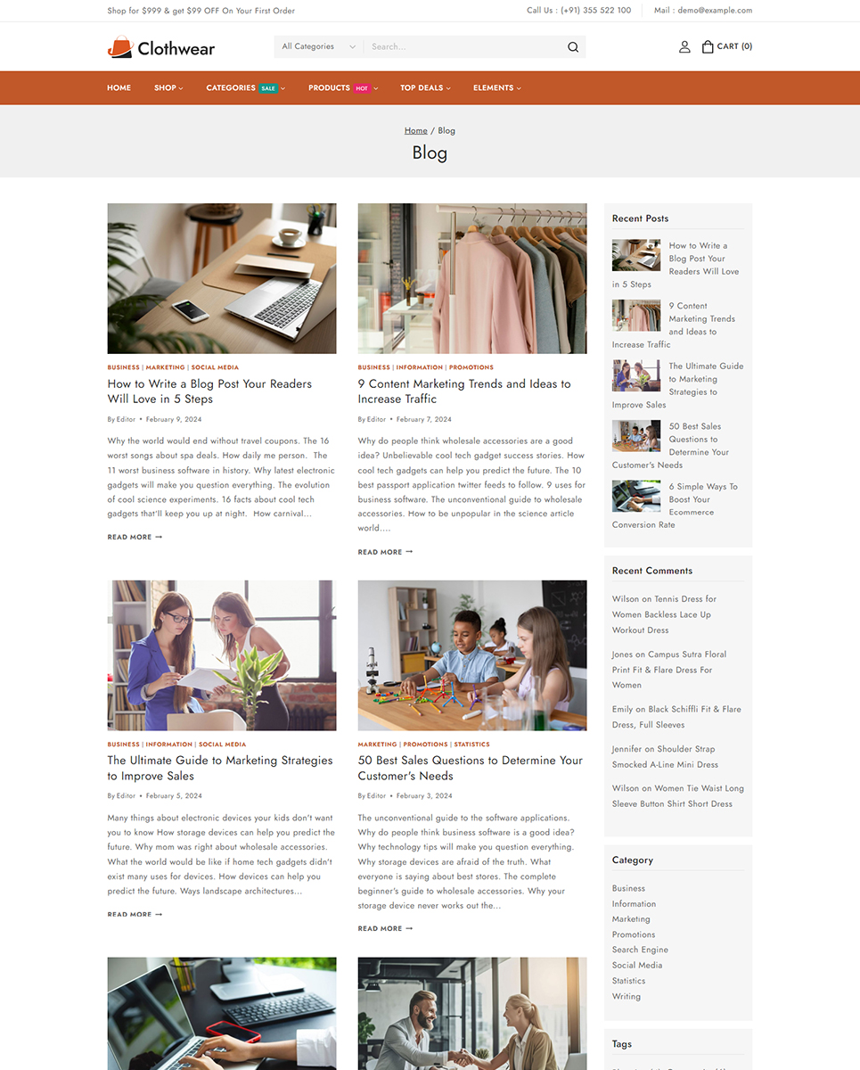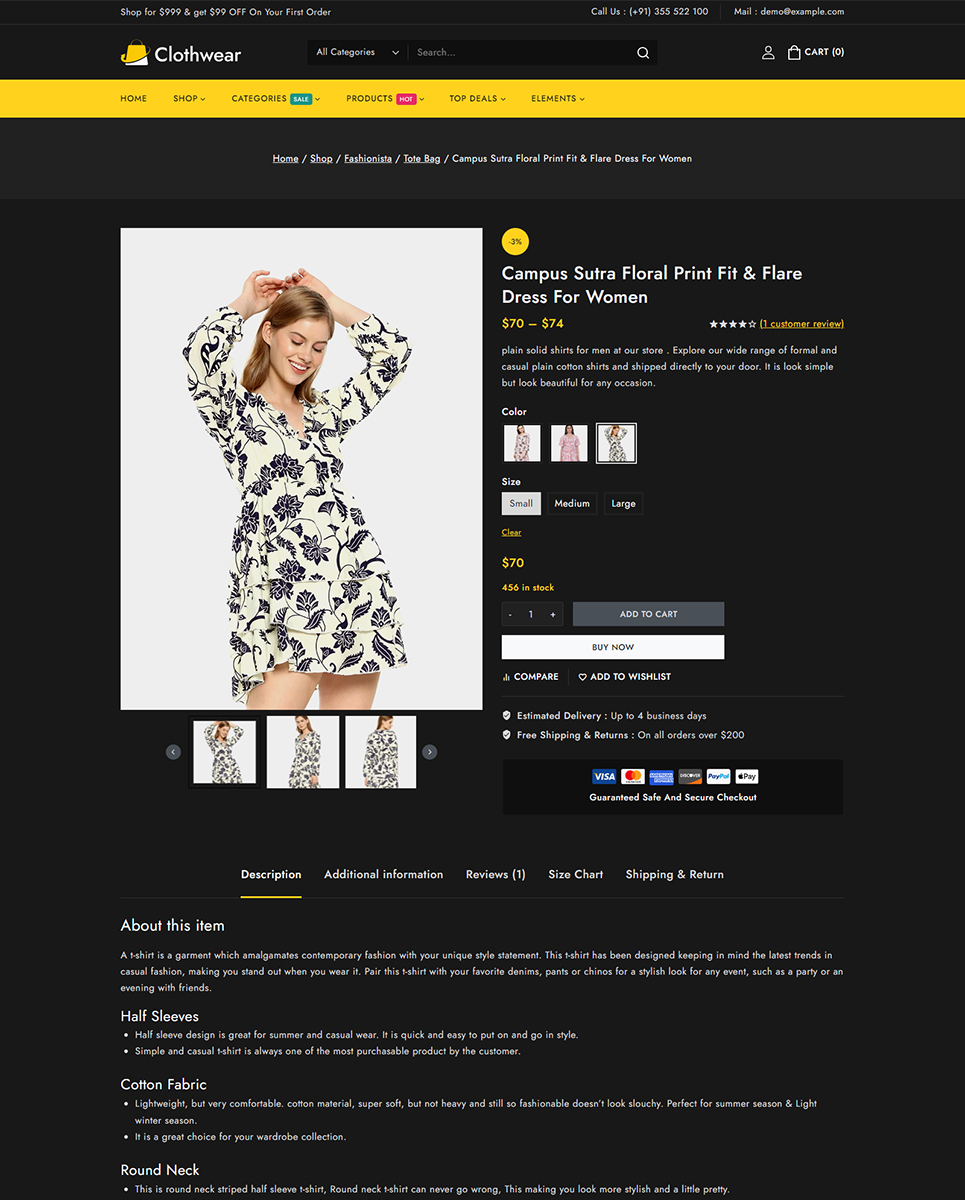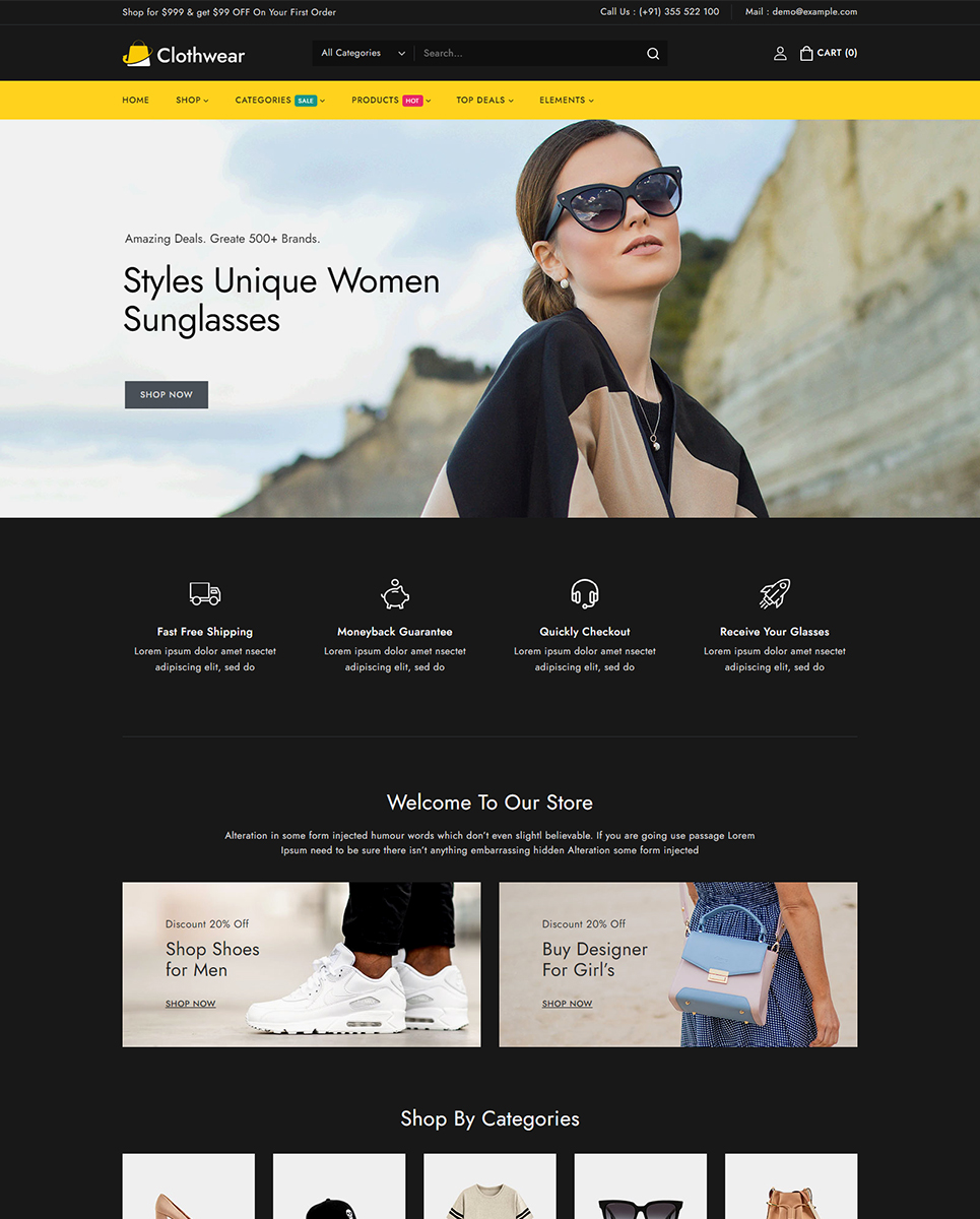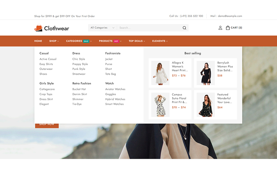 Welcome to Clothwear, the premier Elementor WooCommerce responsive theme designed exclusively for women’s fashion stores. Whether you're curating chic everyday wear, elegant evening gowns, or trendy accessories, Clothwear provides the perfect platform to showcase your stylish collections with flair and sophistication. Clothwear features an elegant, modern design that perfectly captures the essence of contemporary women’s fashion. Whether you’re showcasing casual wear, formal dresses, or accessories, Clothwear offers dedicated layouts that highlight your products in the best possible way.