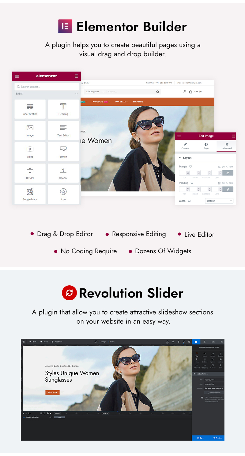 Clothwear is specifically designed with the women’s fashion industry in mind. Every feature and layout is optimized for showcasing clothing, accessories, and footwear, ensuring that your store not only looks beautiful but also operates seamlessly. Take full control of your site’s design with Clothwear’s seamless integration with Elementor, the leading WordPress page builder. Utilize its intuitive drag-and-drop interface to customize every element of your site. Built on the robust WooCommerce platform, Clothwear ensures a smooth and secure shopping experience.