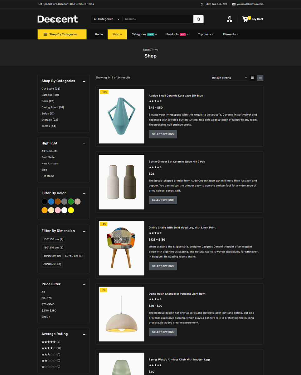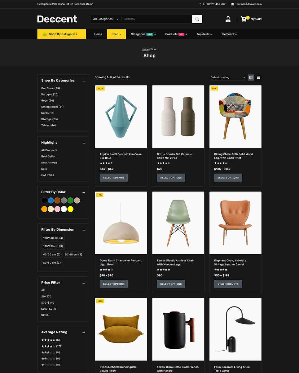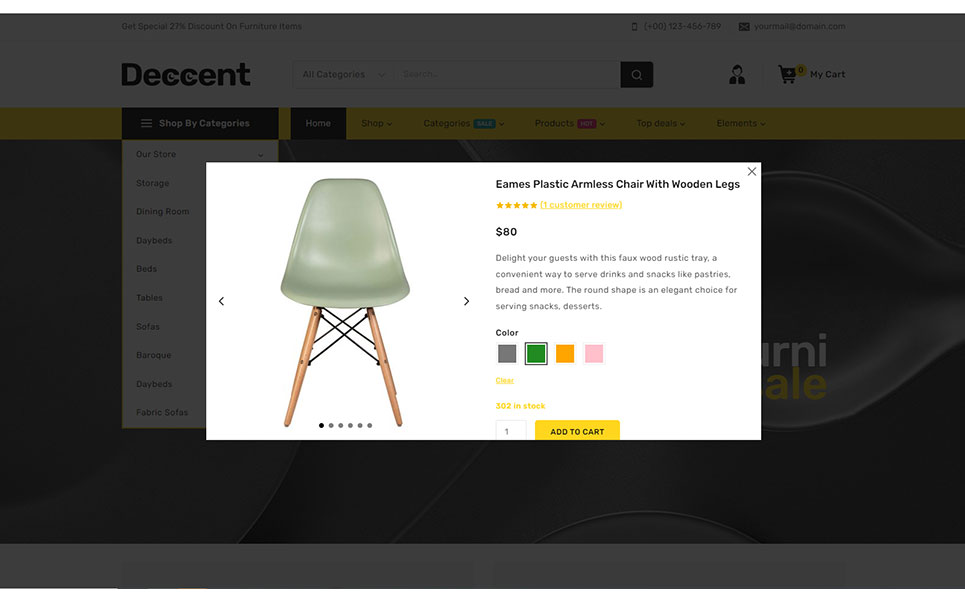Deccent is a sophisticated WordPress eCommerce theme meticulously crafted for furniture and home decor stores, seamlessly integrating Elementor and WooCommerce. With a focus on modern design and functionality, Deccent provides a comprehensive platform to showcase and sell exquisite furniture and home decor items.