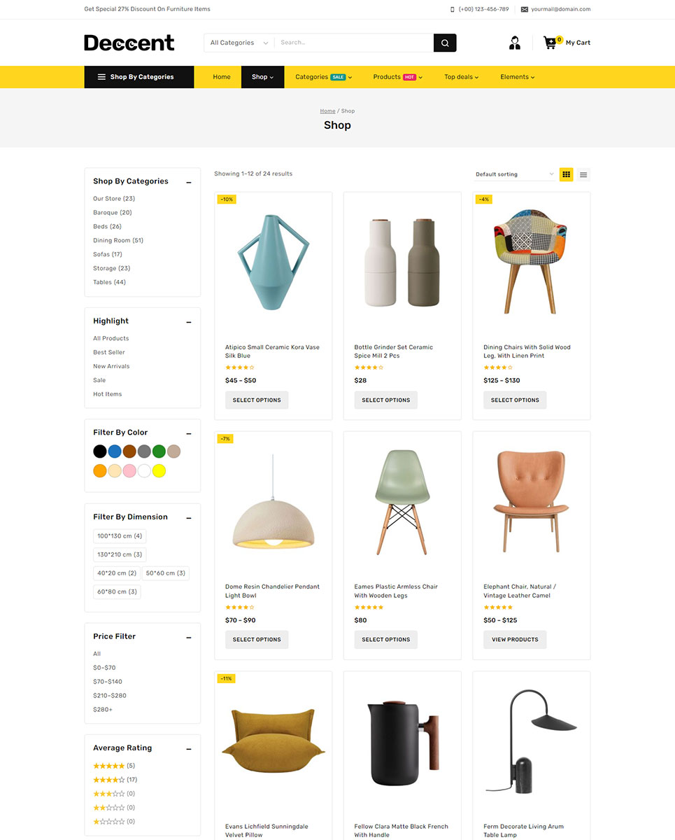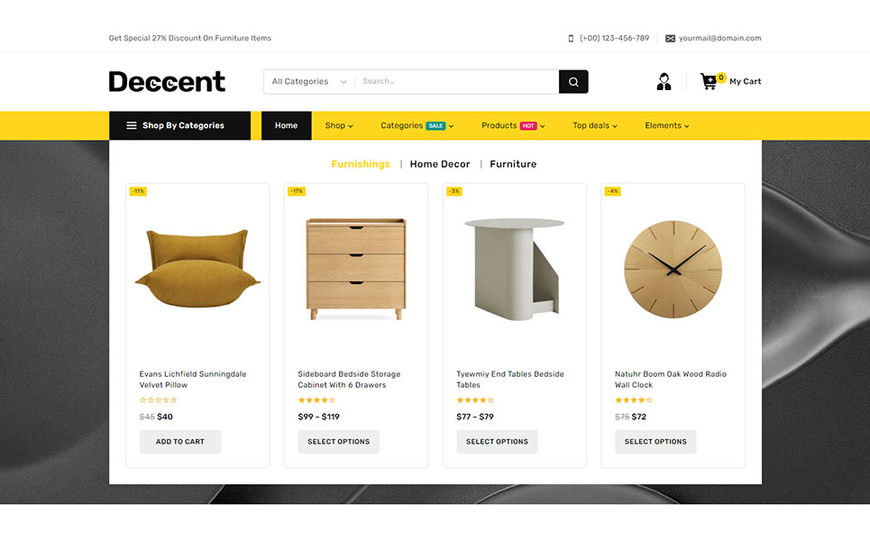 Deccent - Furniture and Home Decor Store Elementor WooCommerce Responsive Theme WooCommerce Theme