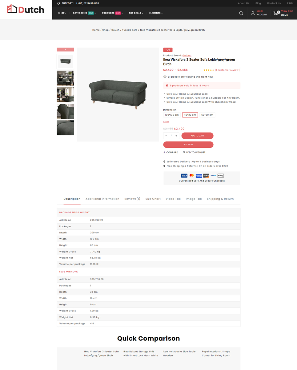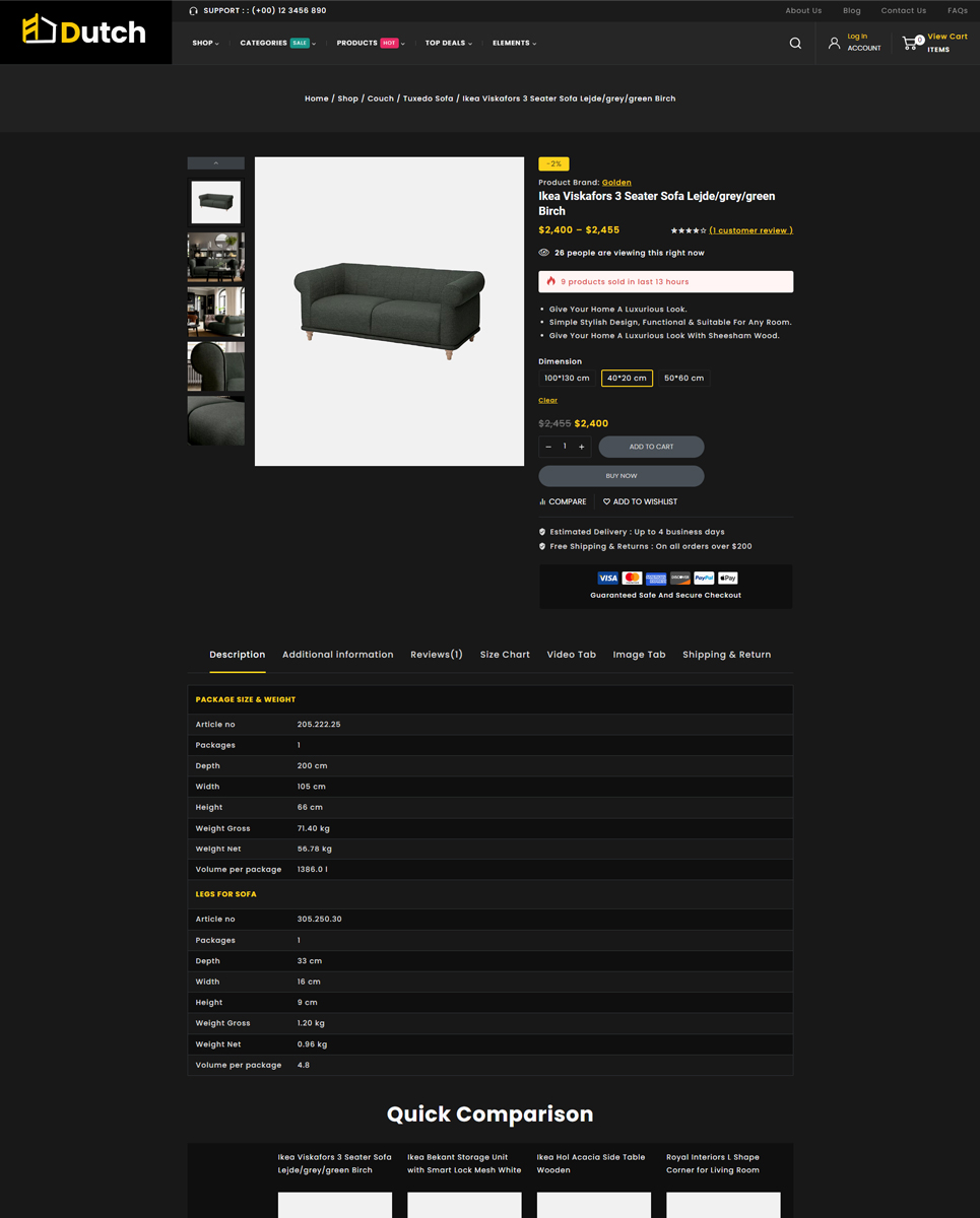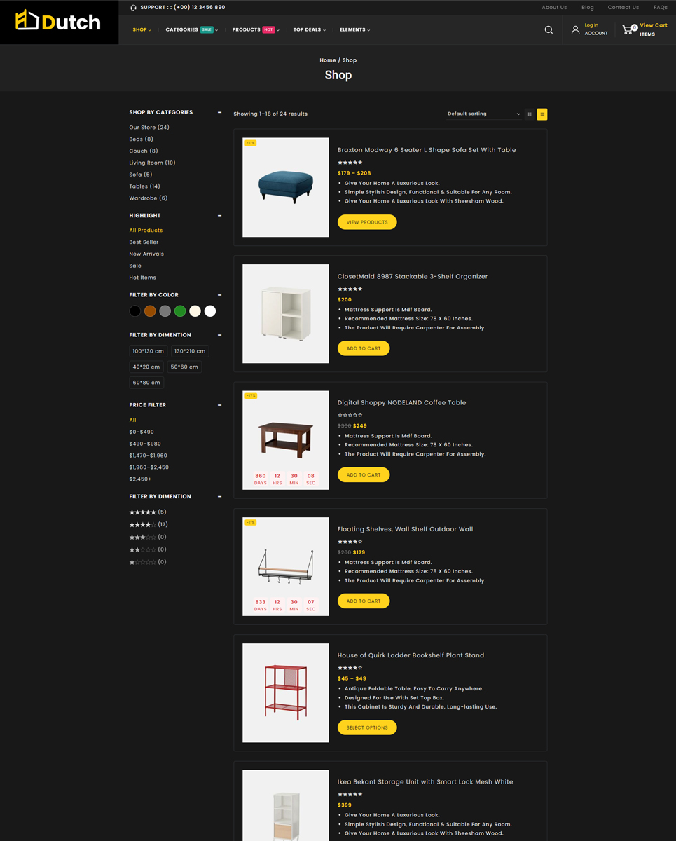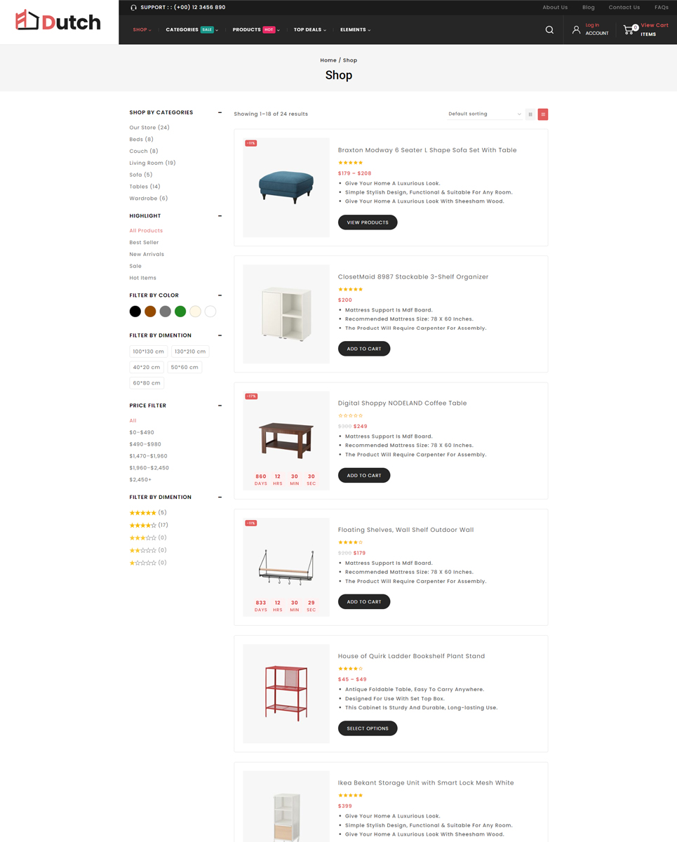 Dutch is a sleek, versatile WooCommerce theme designed to elevate furniture stores, fashion boutiques, and multipurpose online shops. With its modern, clean design, your products will take center stage — whether you’re showcasing chic apparel, home décor, or stylish furniture.