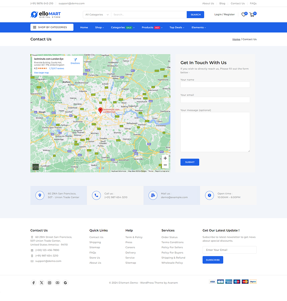 Ellomart offers a robust theme customizer with a live preview. You can easily adjust colors, fonts, layout, and other design elements to match your brand identity. Theme provides tools to customize the header and footer areas with drag and drop elements. You can create unique designs for these sections, adding elements like logos, menus, social media links, and more. Includes a variety of custom widgets that can be added to sidebars and other widget areas, enhancing the functionality and user experience of your site.