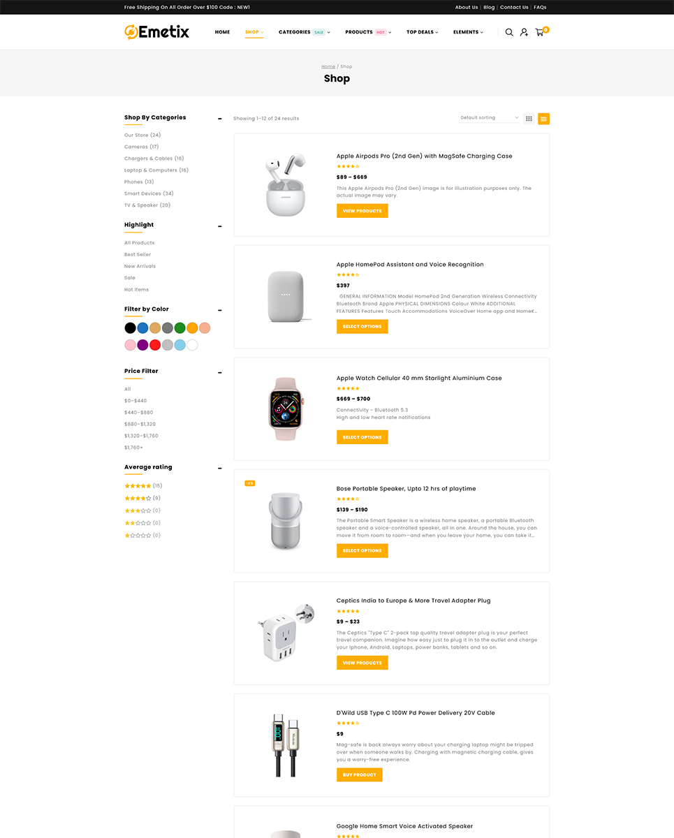 Emetix combines style and technology into a bold, contemporary layout that makes your products pop. Its clean structure keeps user focus on the most important thing — your products. Whether you sell the latest smartphones, gaming gear, smart gadgets, or computer hardware, Emetix’s versatile design adapts effortlessly.