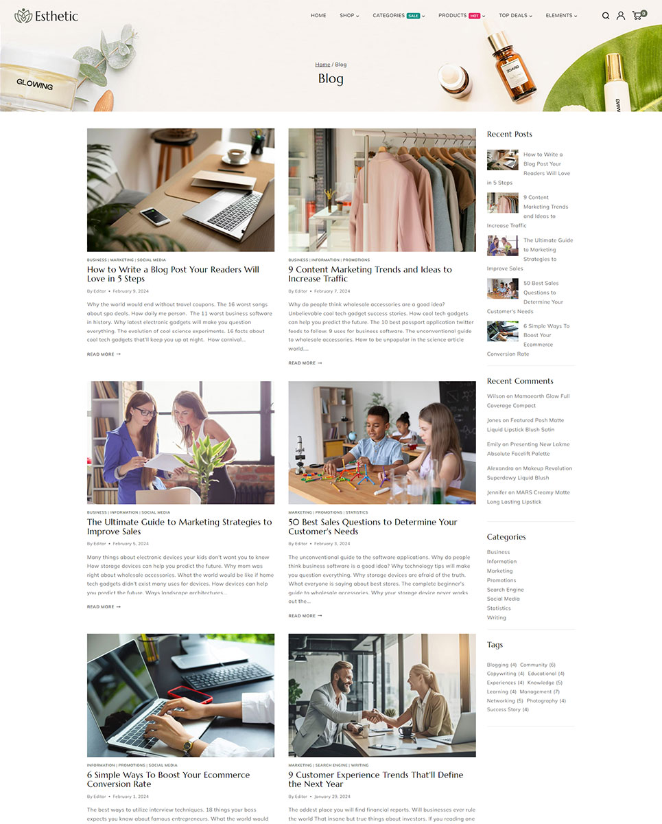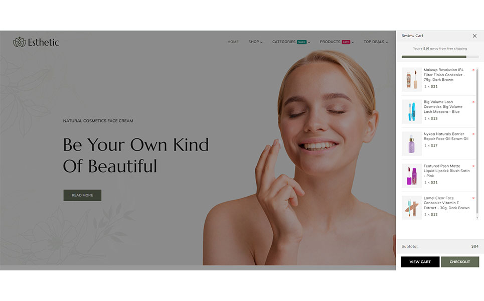 In summary, Esthetic is more than just a theme—it's a comprehensive solution designed to help beauty and cosmetics businesses thrive in the digital landscape.