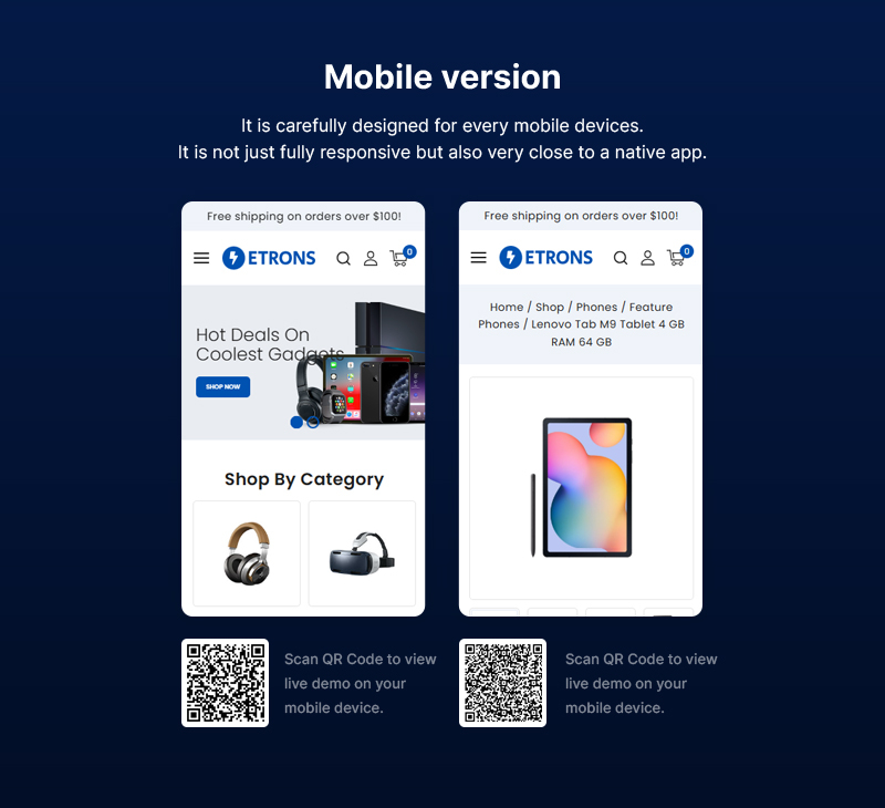 Crafted for speed and usability, Etrons offers advanced filtering, lightning-fast loading times, and smooth animations for an enjoyable shopping journey. Its intuitive mega menu and AJAX-powered features help customers navigate effortlessly, reducing bounce rates and boosting conversions.
