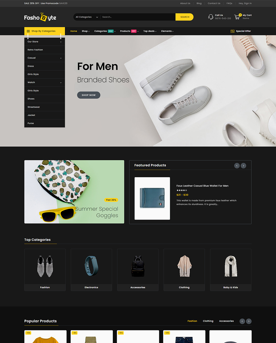 Fashobyte is a multipurpose fashion store wordpress based ecommerce theme that caters to all types of categories, from clothing and accessories to footwear and beauty products. Whether you're a boutique, a high-end fashion brand, or a streetwear retailer, Fashobyte has you covered. With its sleek design, powerful functionality, and user-friendly interface, Fashobyte is the perfect choice for anyone looking to create a stunning fashion store that stands out from the crowd.
