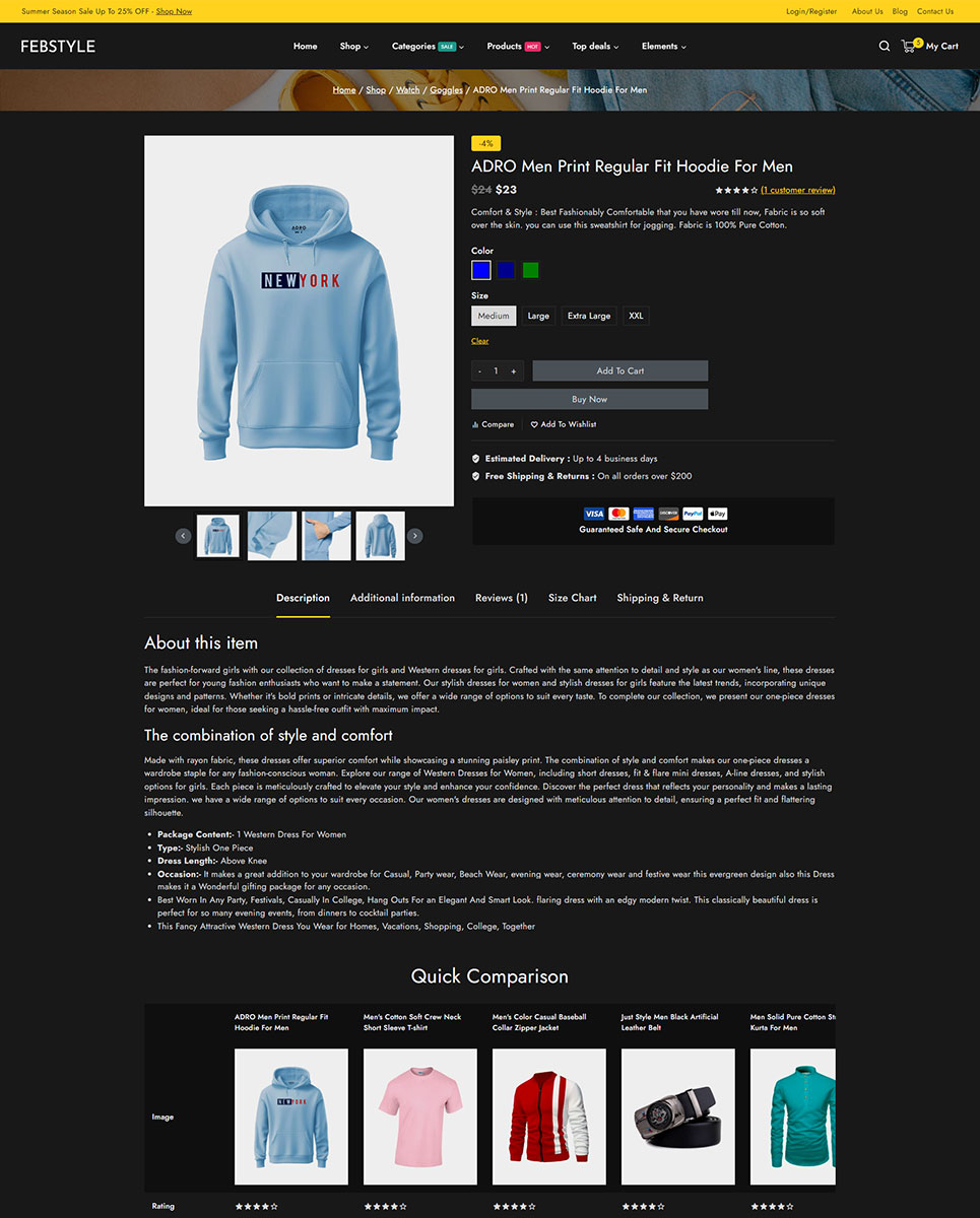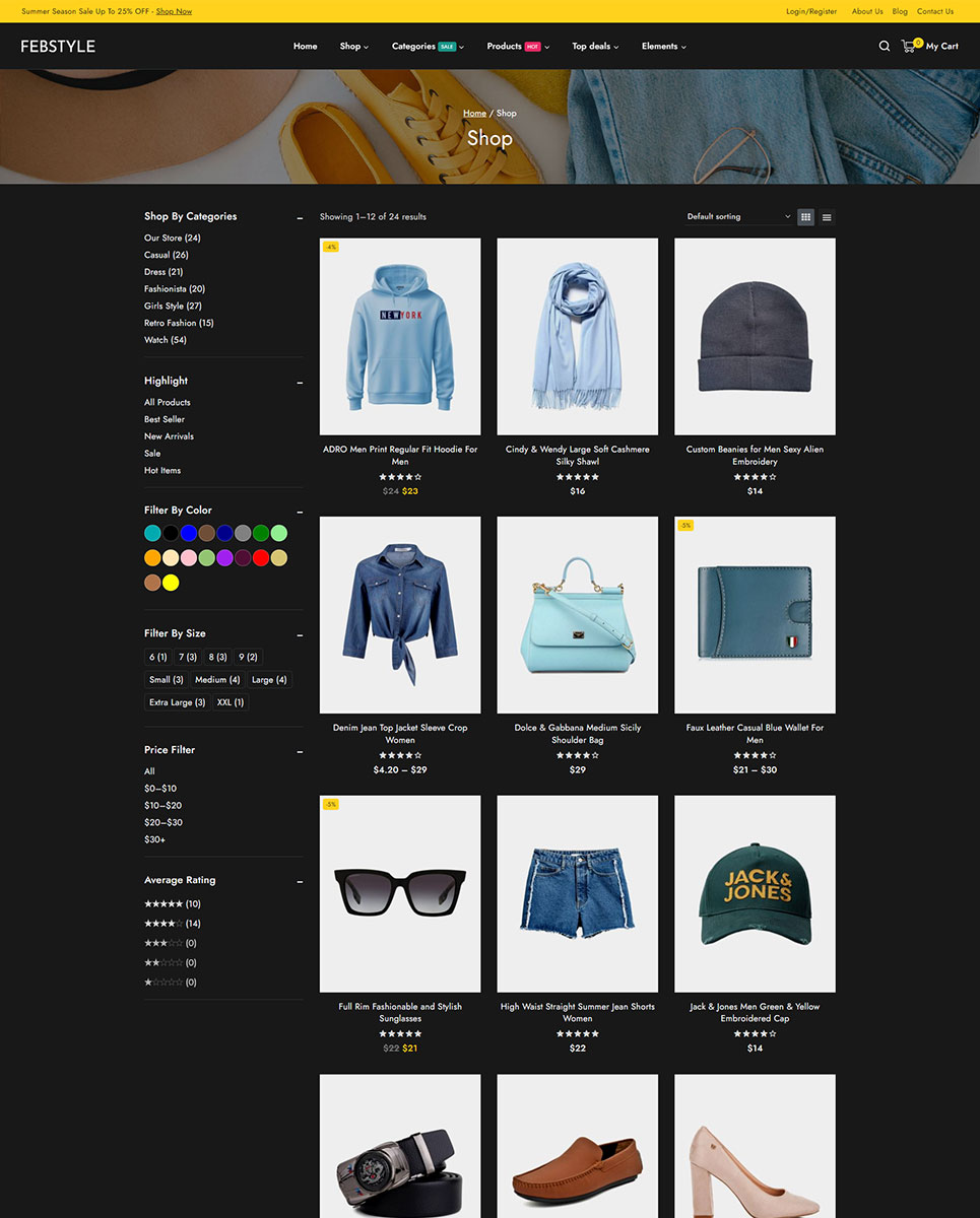 FEBSTYLE is a stylish and feature-packed WooCommerce theme designed for fashion and clothing stores. The theme is built with Elementor, a popular drag-and-drop page builder, and comes with a variety of powerful features that make it an excellent choice for online fashion and apparel retailers. With its user-friendly features and customizable options, you can create a unique and engaging shopping experience for your customers.
