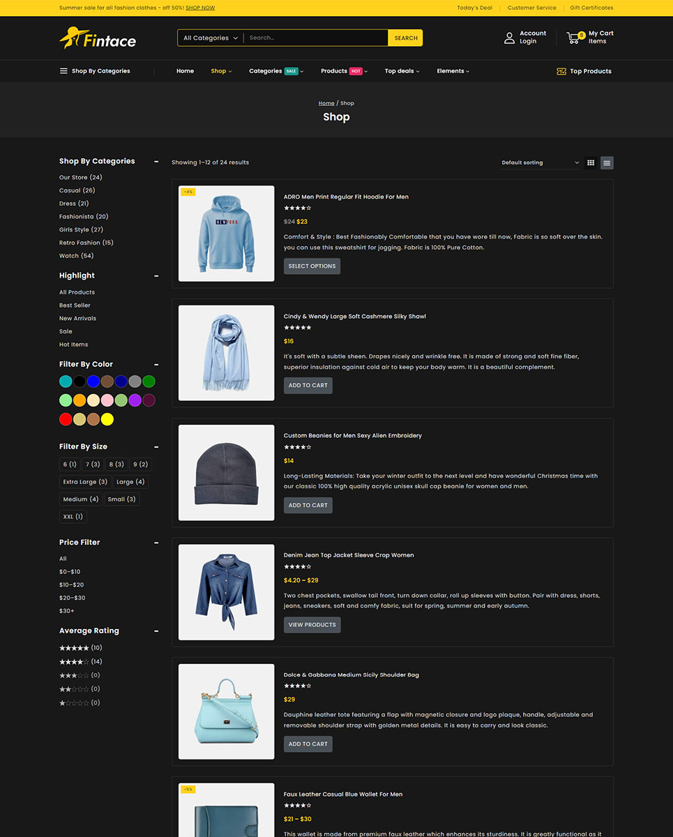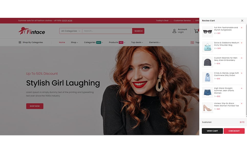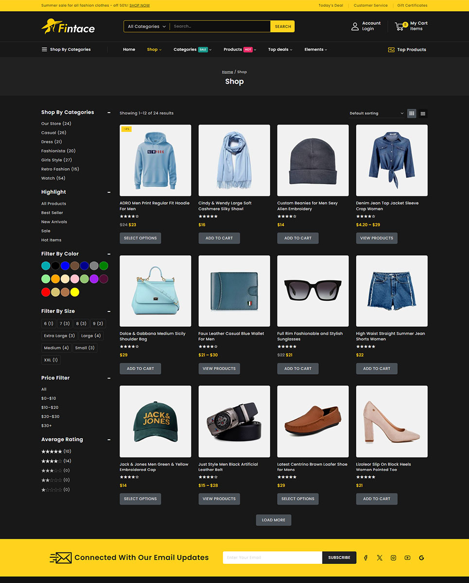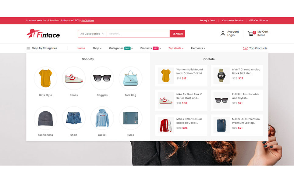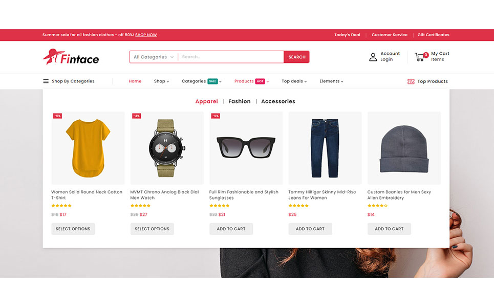 Introducing Fintace, the Multipurpose Fashion Store Elementor WooCommerce Responsive Theme that redefines online fashion retail business such has products for fashion, apparel, clothes cosmetics, jewelry, bags, watches, shoes and fashion accessories. Meticulously crafted with a perfect blend of aesthetics and functionality, Fintace empowers fashion enthusiasts, boutique owners, and trendsetters to create an immersive and seamless shopping experience for their customers.