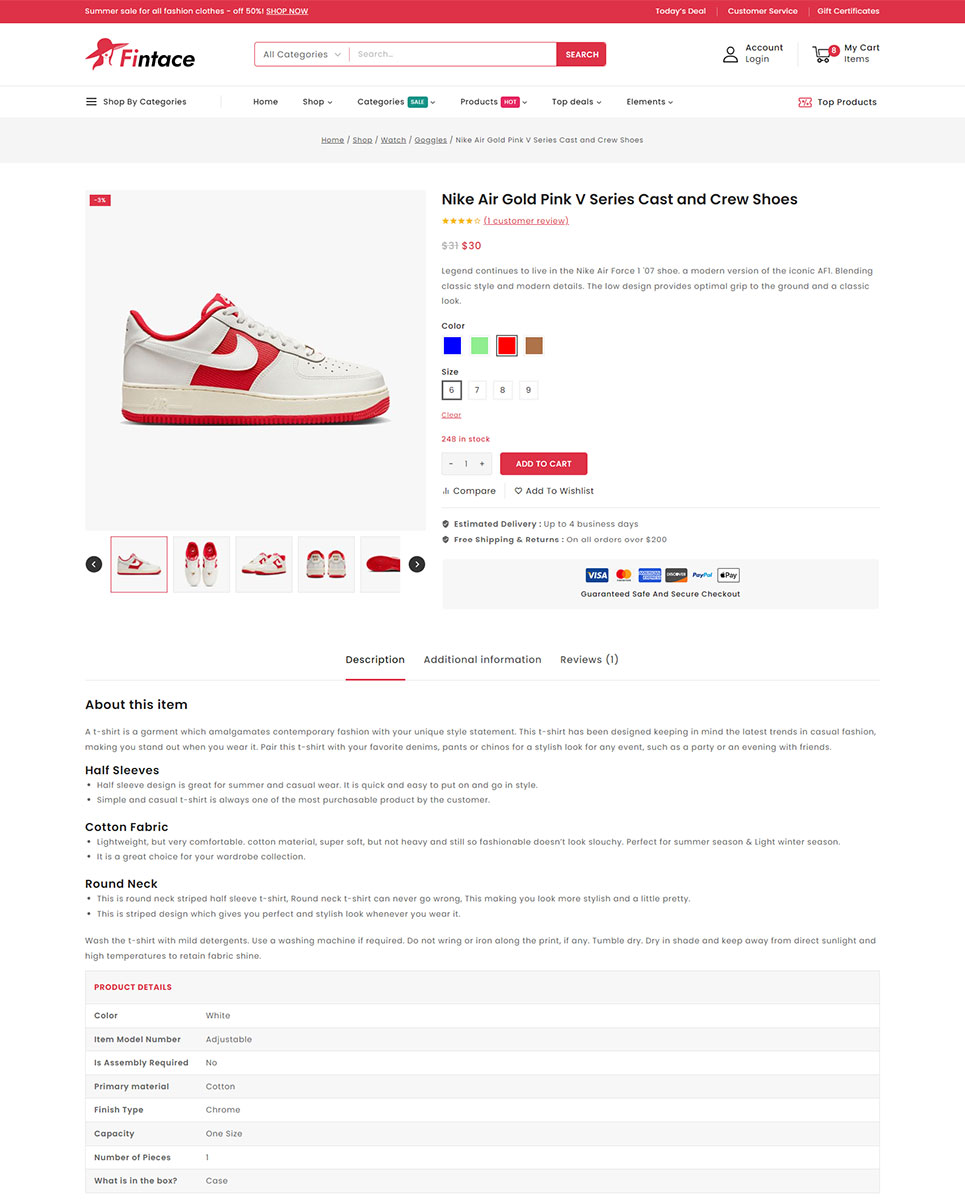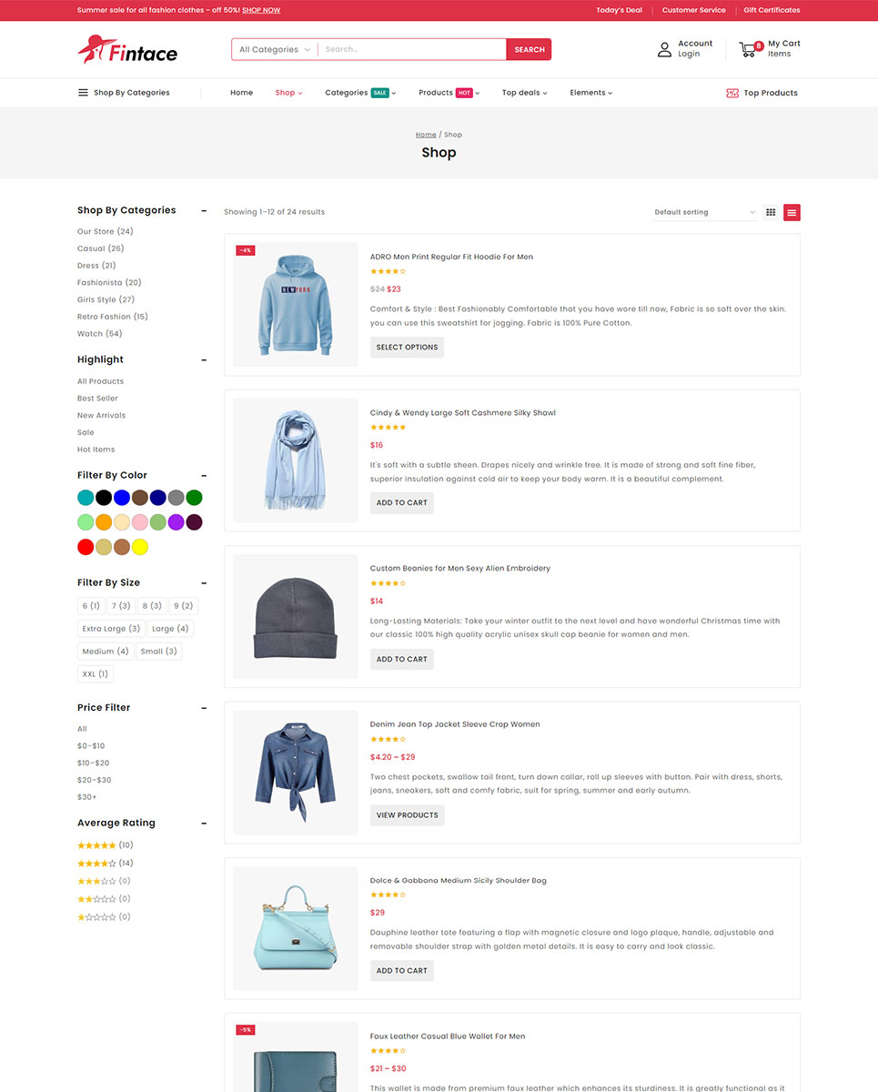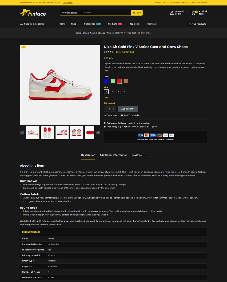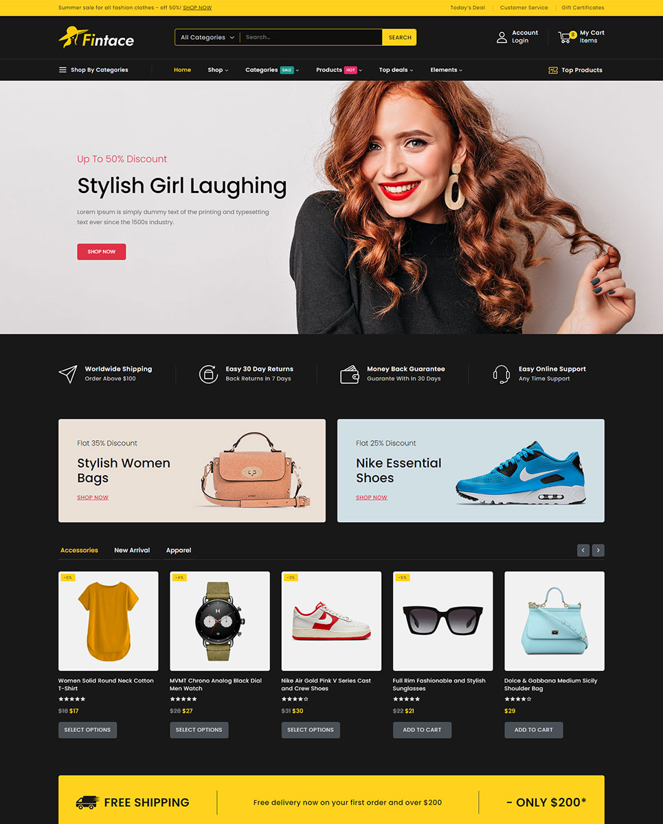 Introducing Fintace, the Multipurpose Fashion Store Elementor WooCommerce Responsive Theme that redefines online fashion retail business such has products for fashion, apparel, clothes cosmetics, jewelry, bags, watches, shoes and fashion accessories. Meticulously crafted with a perfect blend of aesthetics and functionality, Fintace empowers fashion enthusiasts, boutique owners, and trendsetters to create an immersive and seamless shopping experience for their customers.
