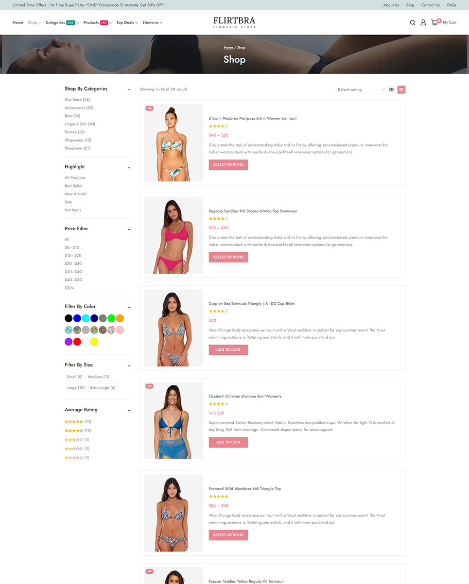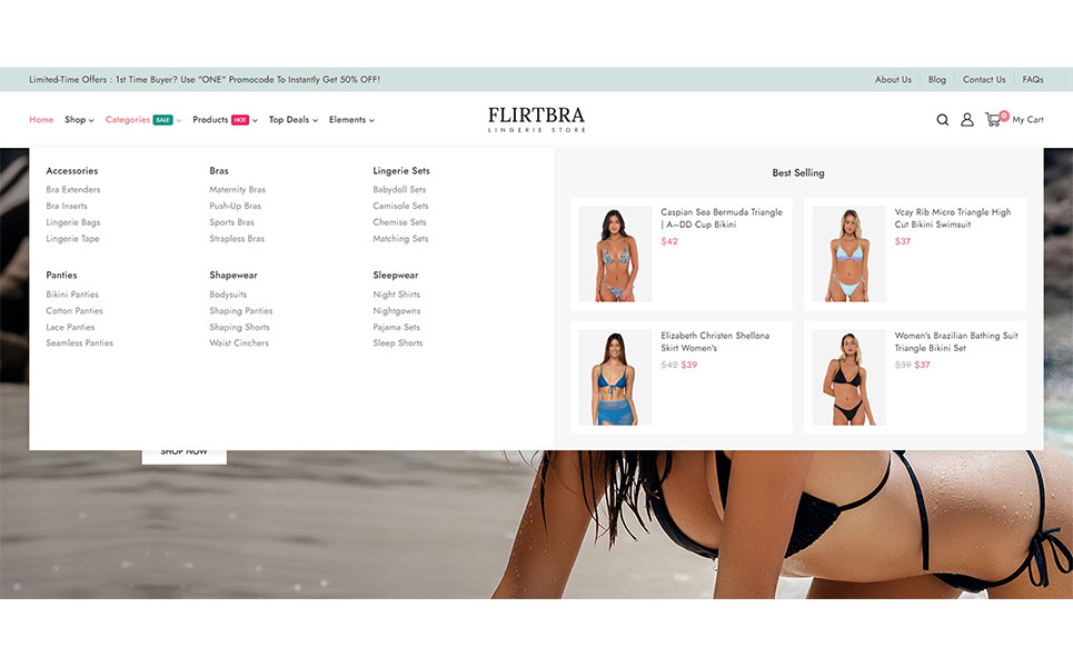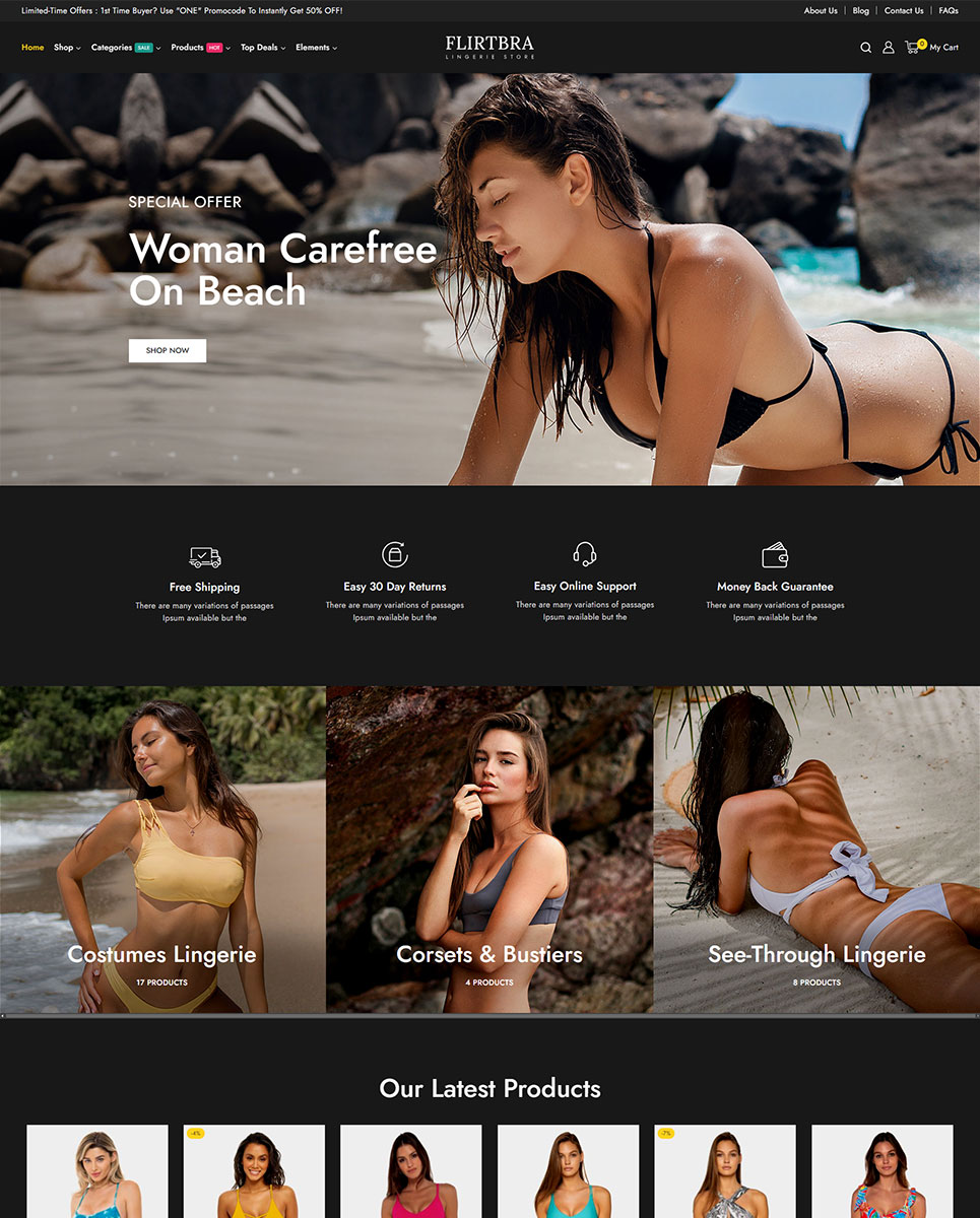 Flirtbra - Beachwear Bikini and Lingerie Store Elementor WooCommerce Responsive Theme WooCommerce Theme